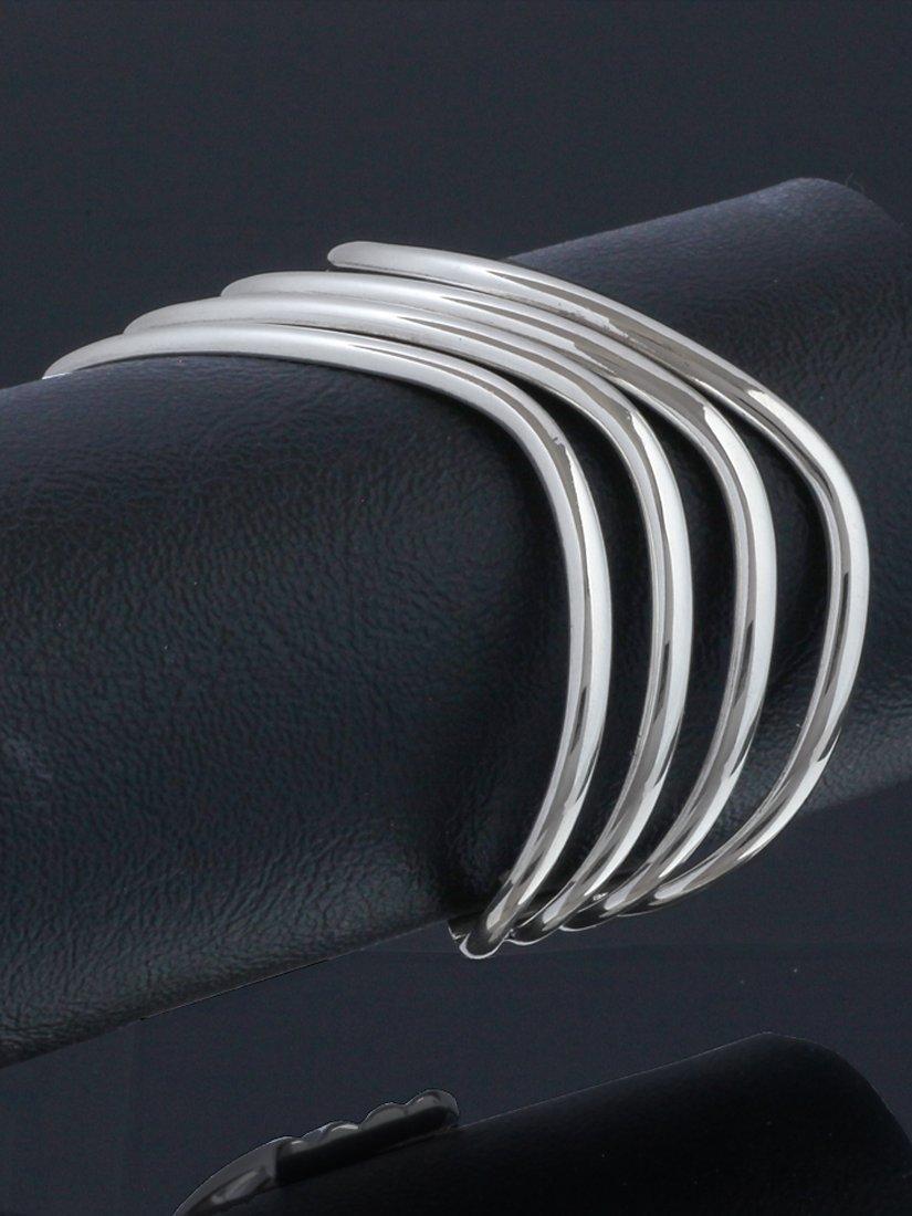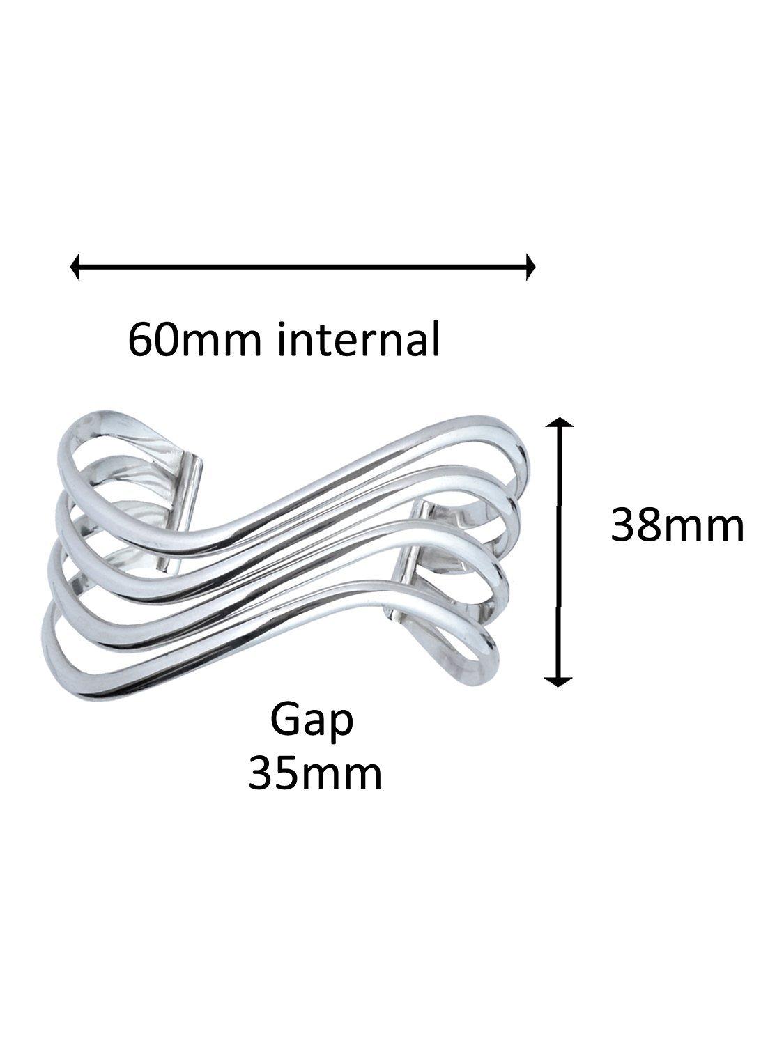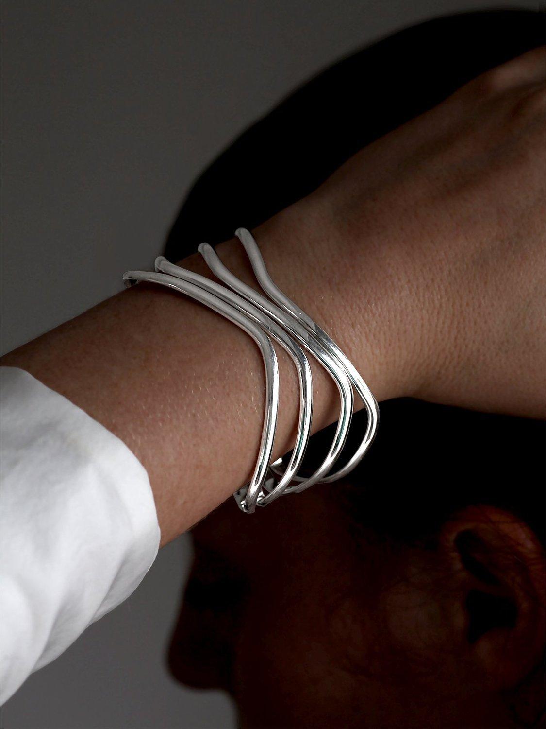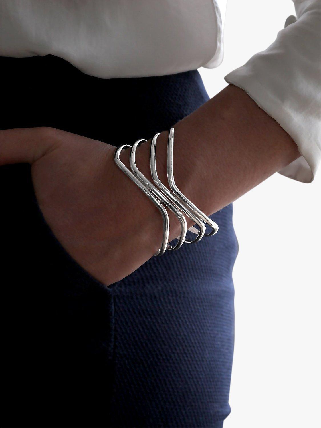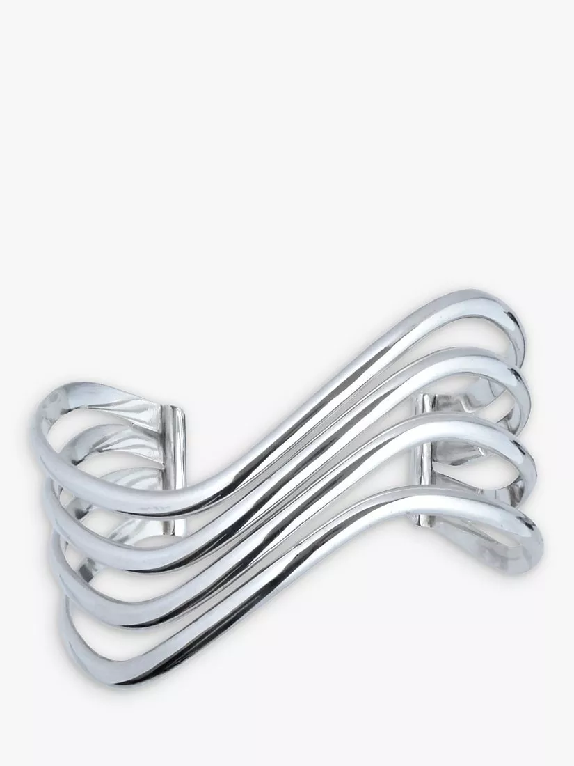 The solid open-end design offers versatile style possibilities thanks to its classic sterling silver texture, whilst the four row wave styling is both sinuous and feminine.