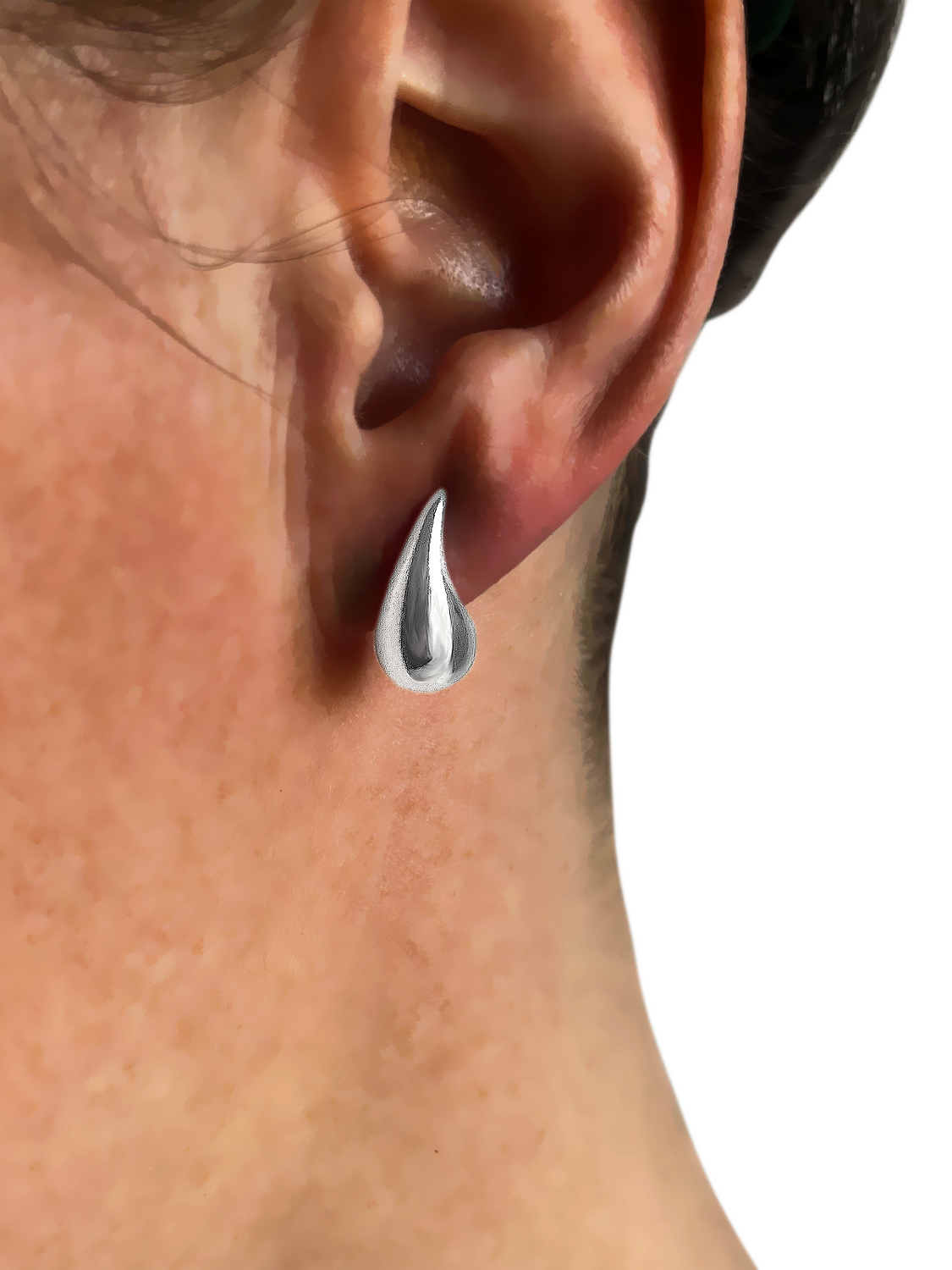 These comma-shaped stud earrings have a polished finish and are suitable for pierced ears only.