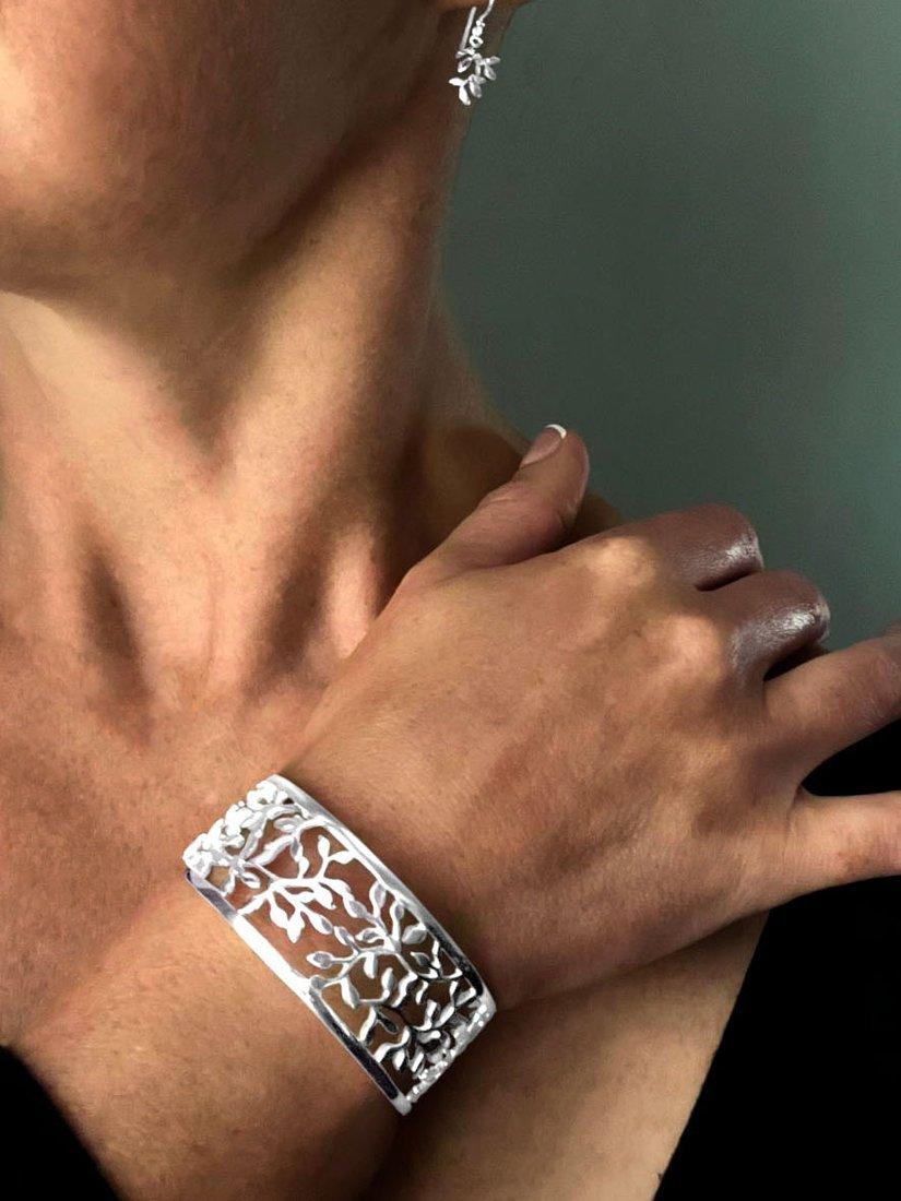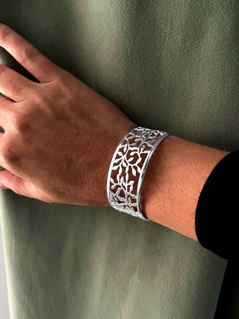 Cast in a signature hoop shape, this cut out leaves cuff bangle from Nina B adds something new to jewellery collections. In an easy, slip-on design, it'll provide a secure fit.