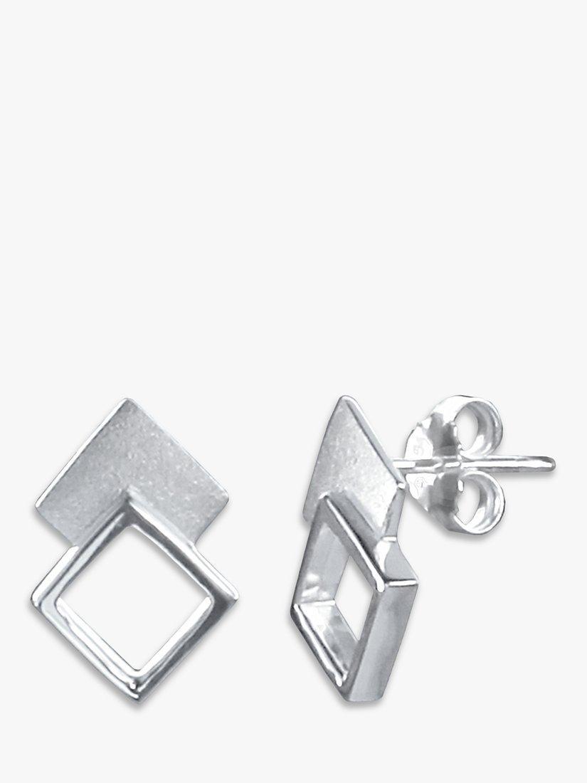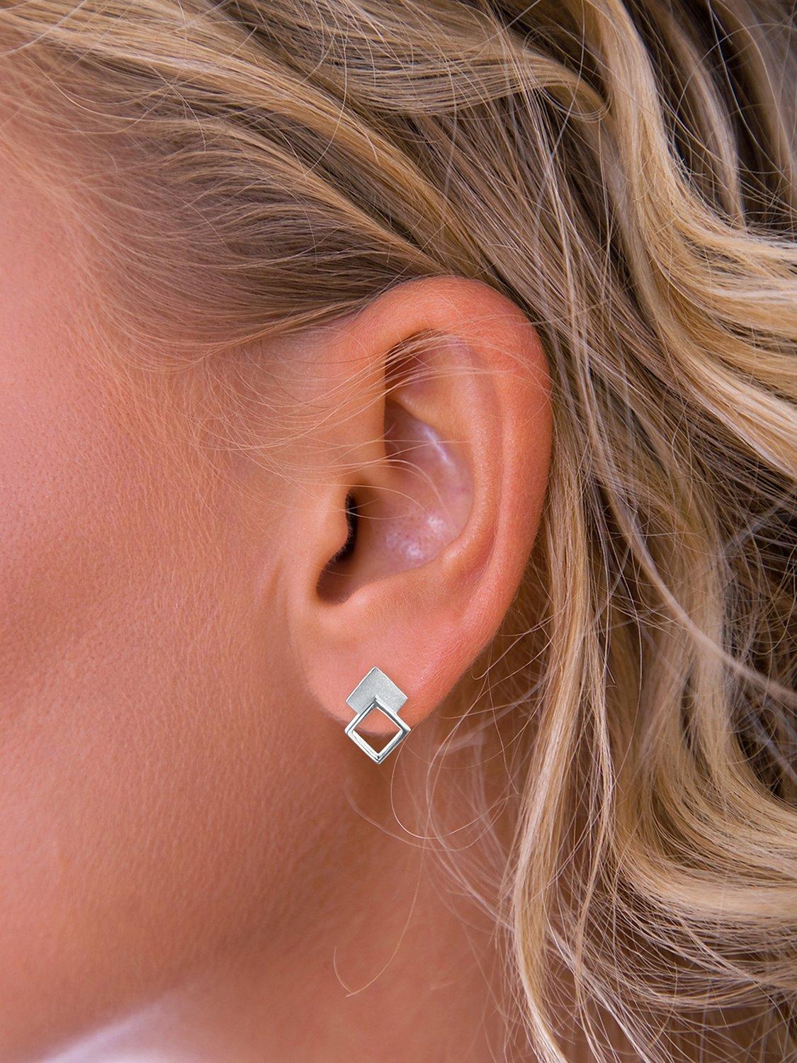 These Nina B stud earrings are made from sterling silver, as per the brand's go-to material choice. The two connected squares strike with their contrasting open and filled textures. The pair is made for pierced ears only.