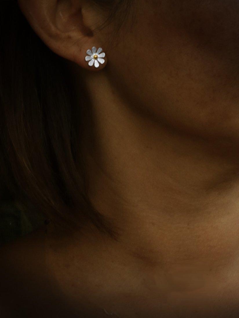 Opting for an understated look, this pair of flower stud earrings from Nina B is designed with 14 carat gold plating in the centre.