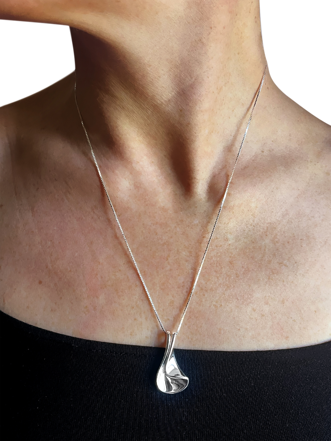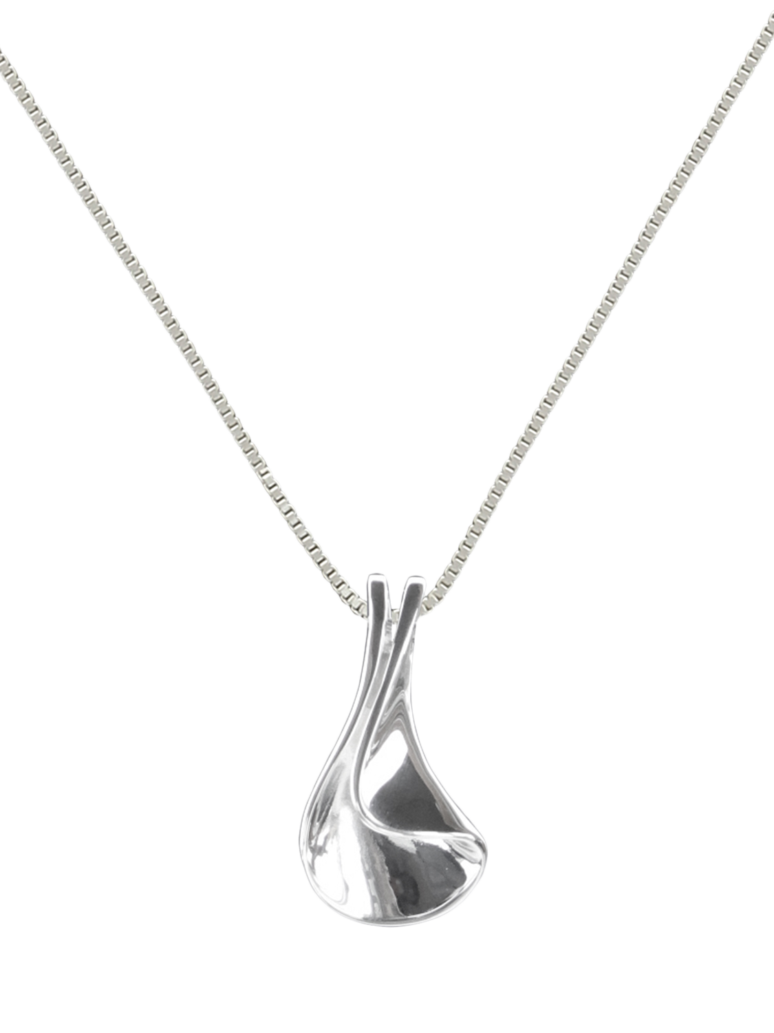 A gorgeous, unusual pendant, made from solid sterling silver. This striking designer piece has a highly polished finish.