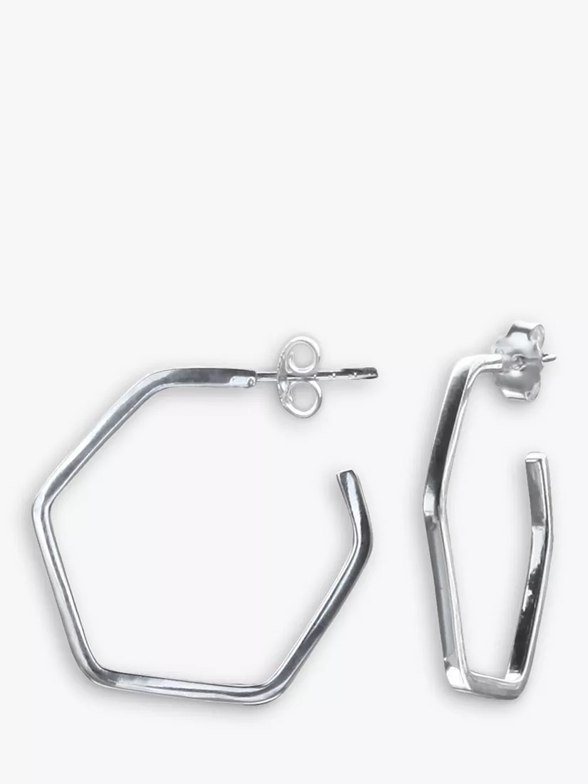 Produced in solid sterling silver, the pair presents a slim design and an attractive hexagonal shape that will certainly stand out. The earrings are made for pierced ears only.