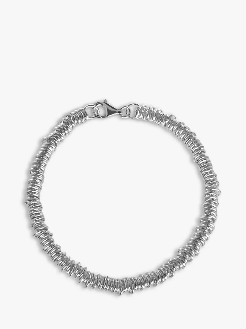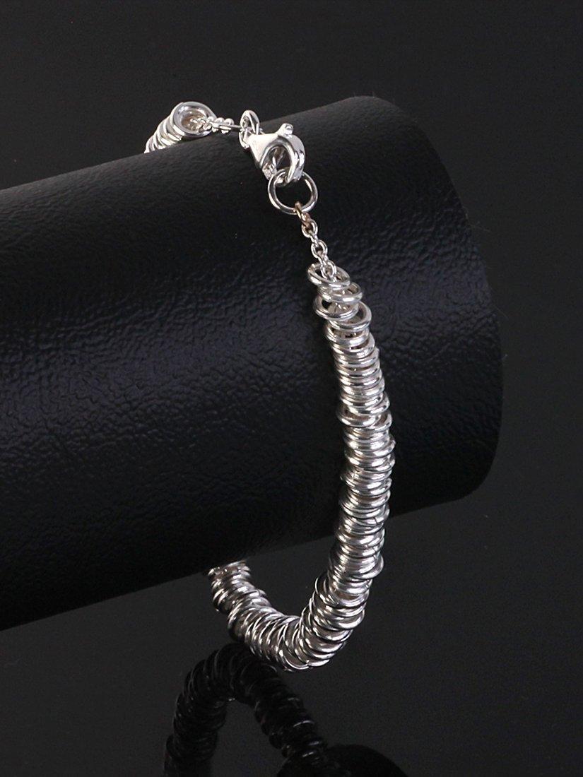 The bracelet presents a long sterling silver chain which suspends a tightly-arranged loop set and fastens with a traditional and safe lobster clasp.