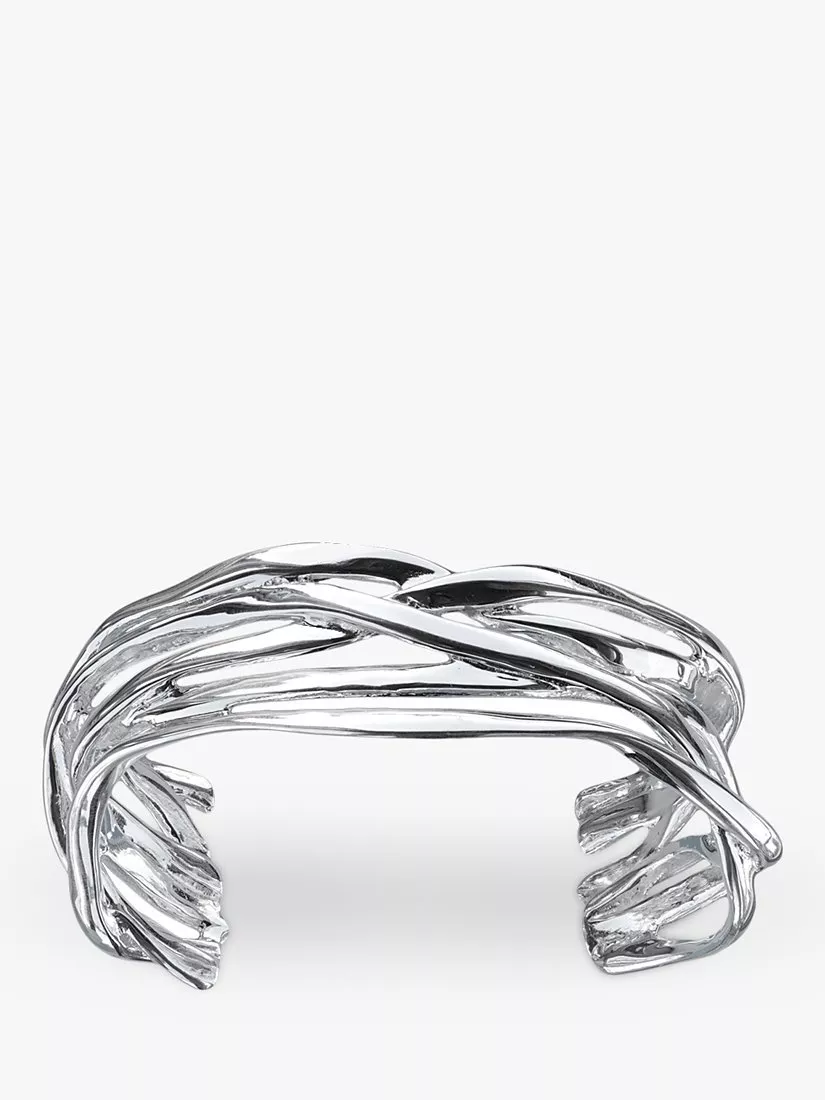 This Nina B bangle is made from sterling silver and has an open-end design that fits around the wrist nicely and comfortably. The bangle exudes a very contemporary aesthetic with its cut-out multi-strand structure.
