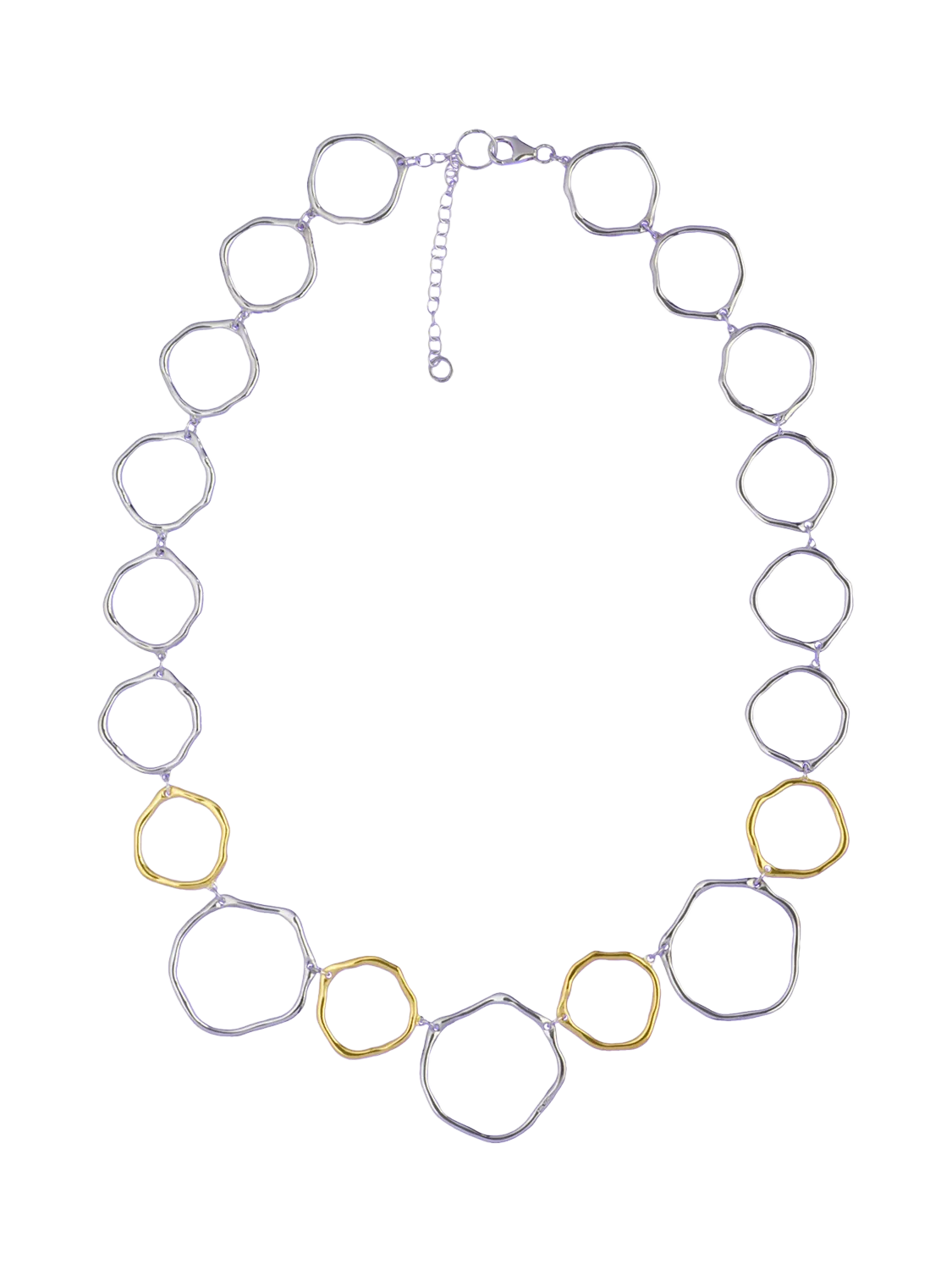Nina BOrganic Circles Collar Necklace, Silver/Gold