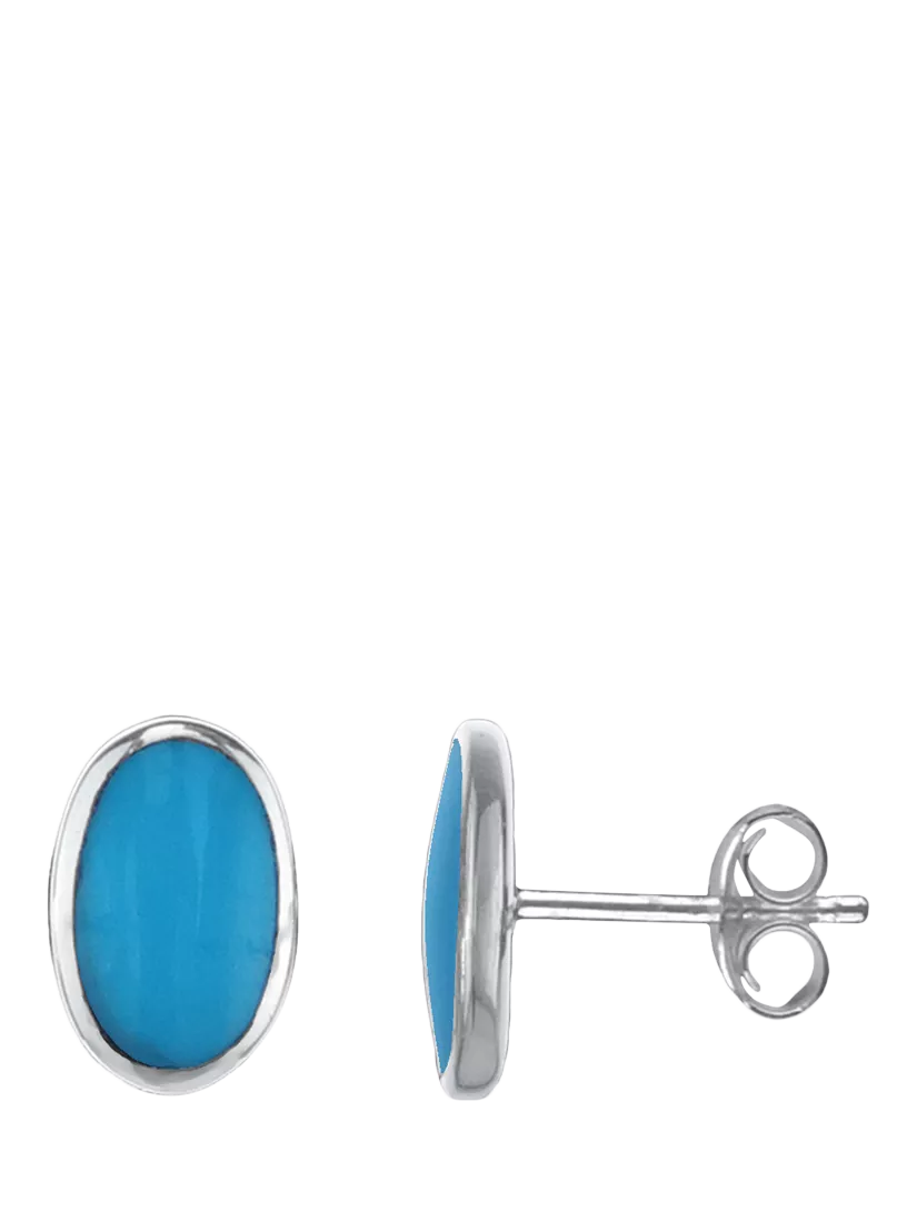 Nina BOval Stud Earrings, Blue Turquoise/Silver