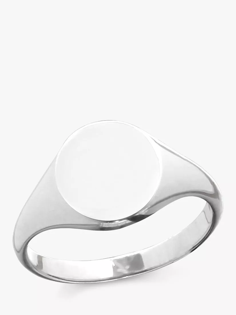 This signet ring from Nina B is made from sterling silver and offers a classic look represented by a slim band and a round front part.