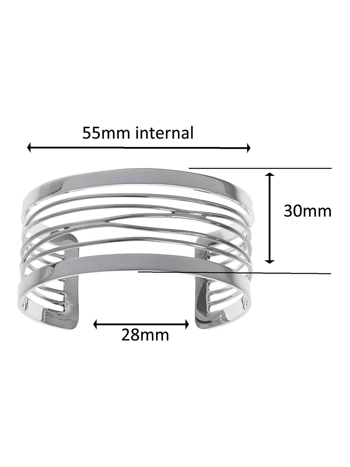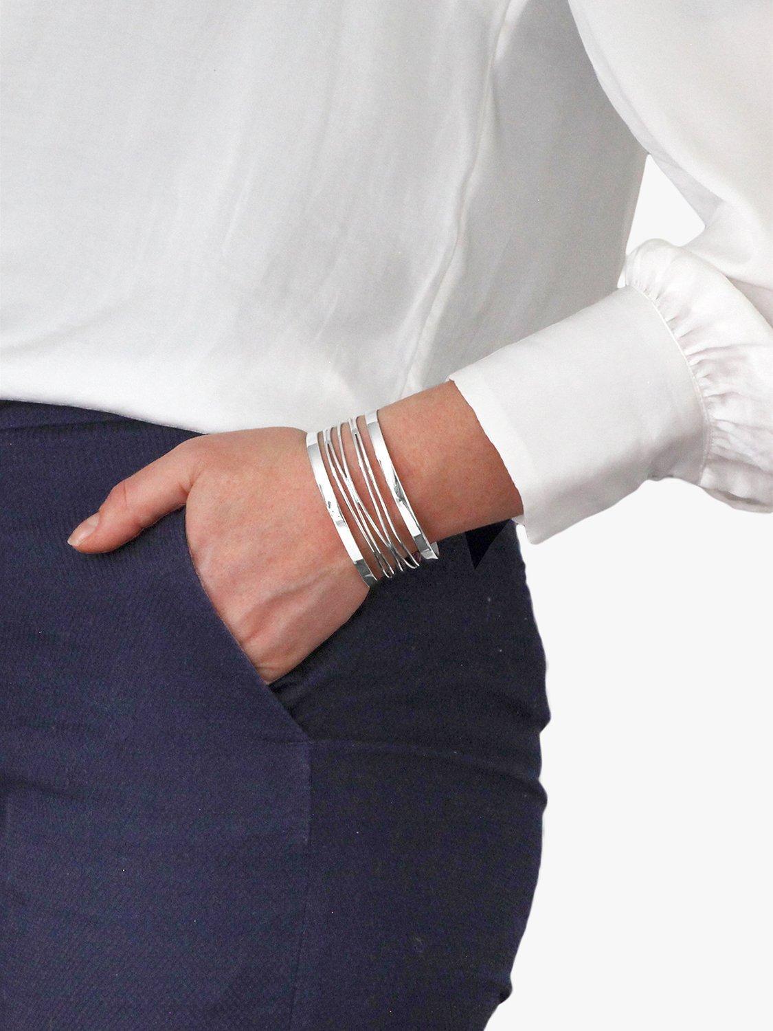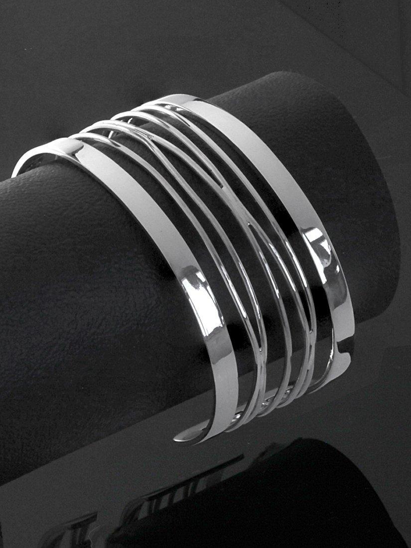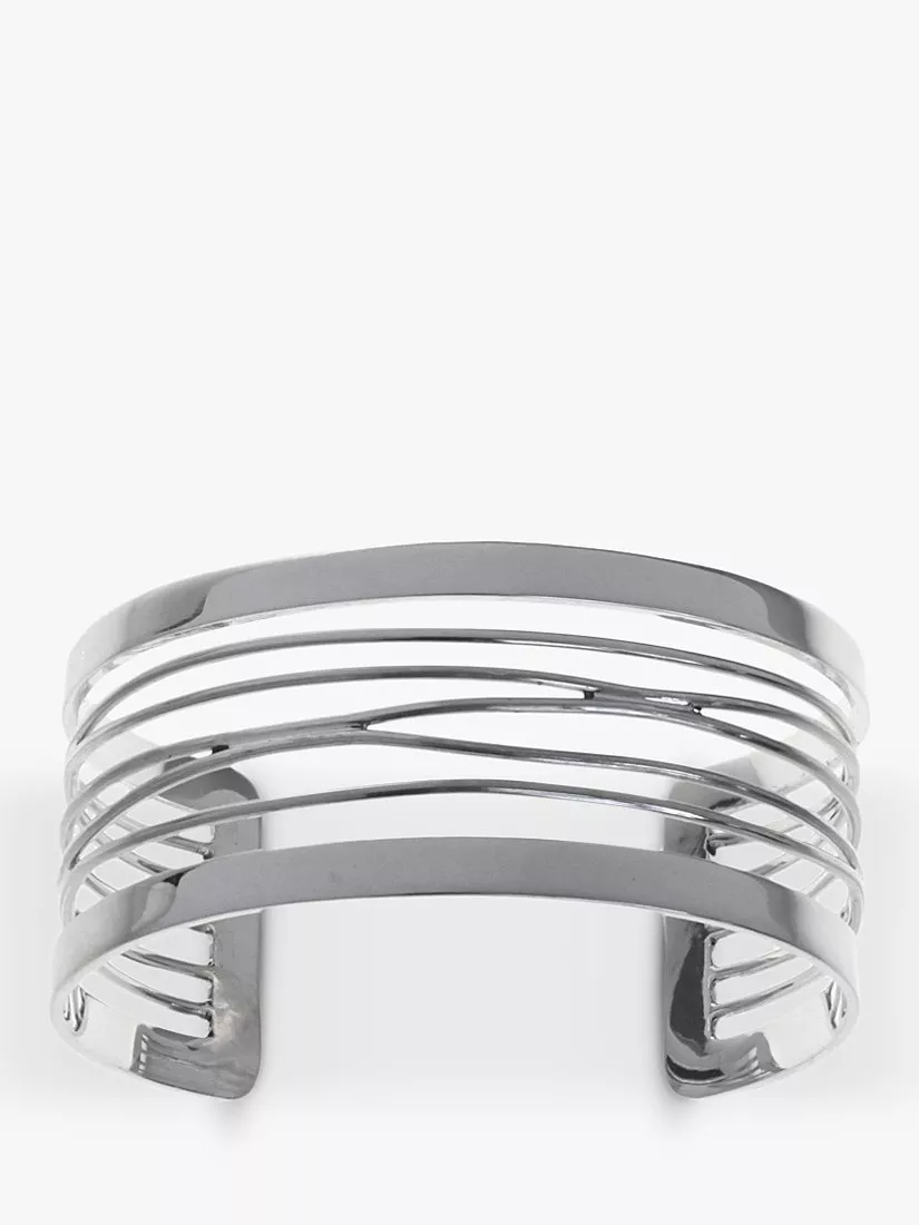 Crafted from polished sterling silver into an open-end design, the cuff boasts an intriguing zig-zag styling that has a modern and edgy feel.
