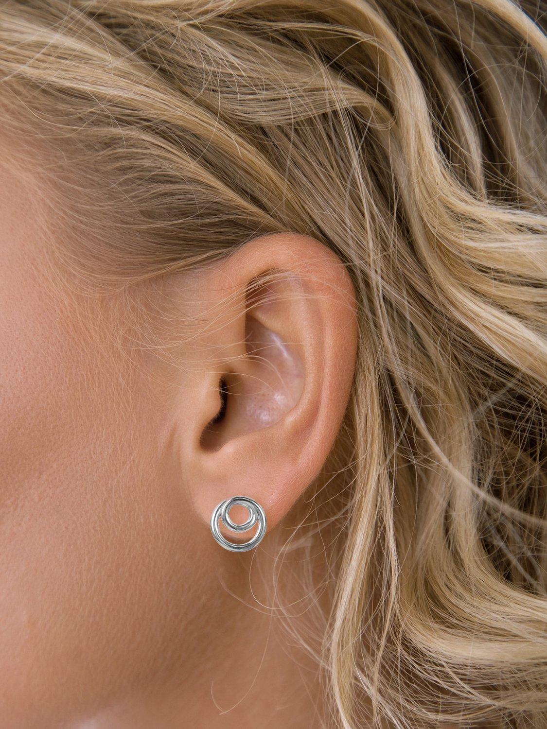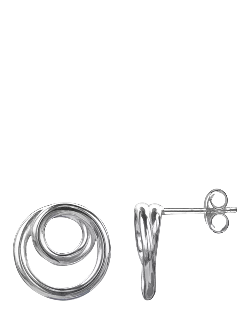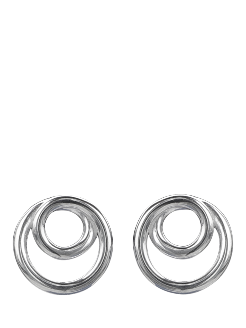 These sterling silver studs feature a unique double-loop design, offering a contemporary twist on a classic everyday essential. Presented in a branded gift box. Suitable for pierced ears only.