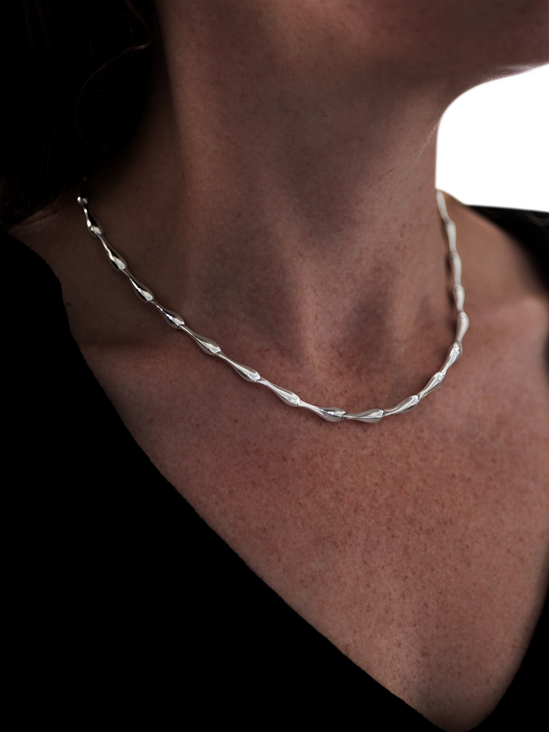 A contemporary sterling silver link necklace from Nina Breddal. The polished links have an elegant tapering design, and are 4mm in width. The necklace is 40cm long.