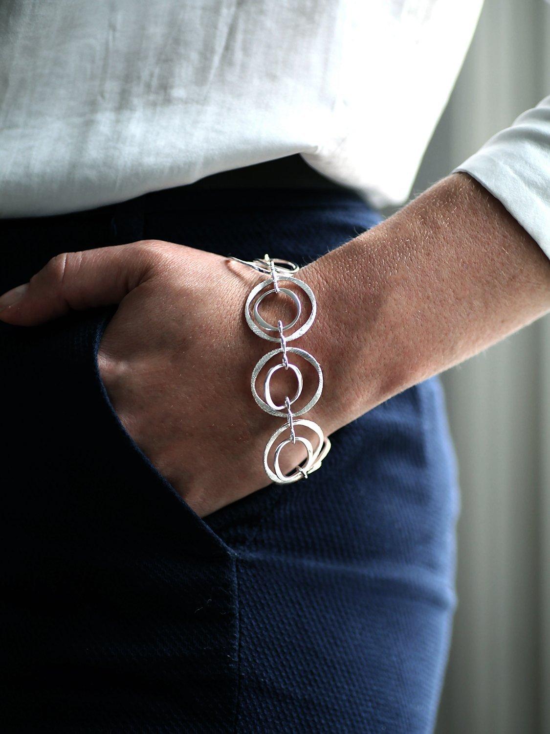 Keep your look poised from desk to dinner and beyond with this chunky open circles bracelet from Nina B.