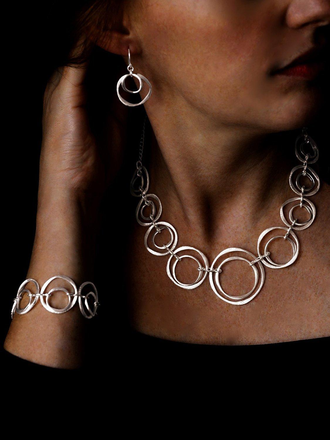 The fashion-forward yet minimalist design is made from sterling silver and features brushed satin open links in two sizes that create a beautiful textured look. Complete with an adjustable extension chain and a lobster clasp.