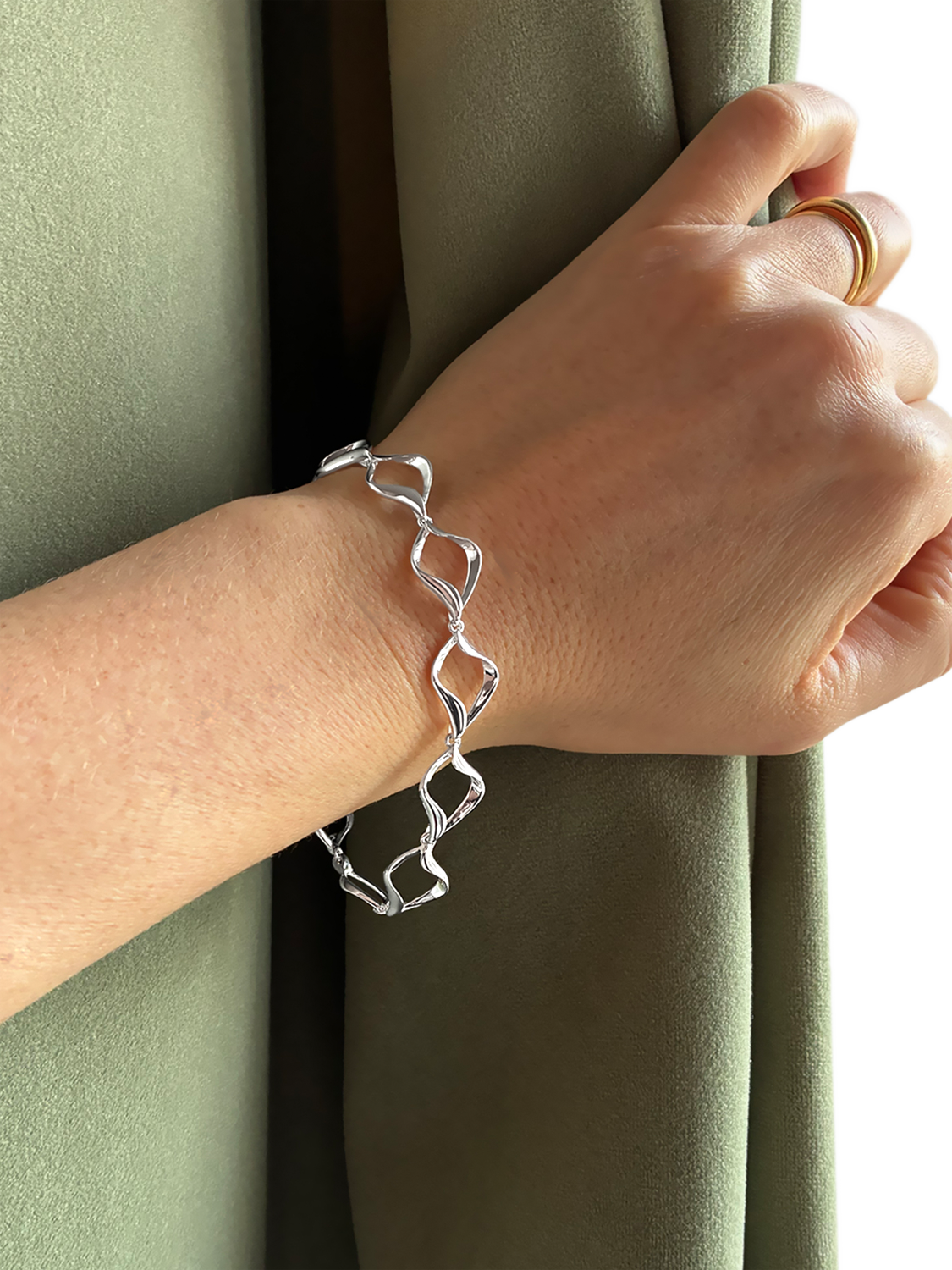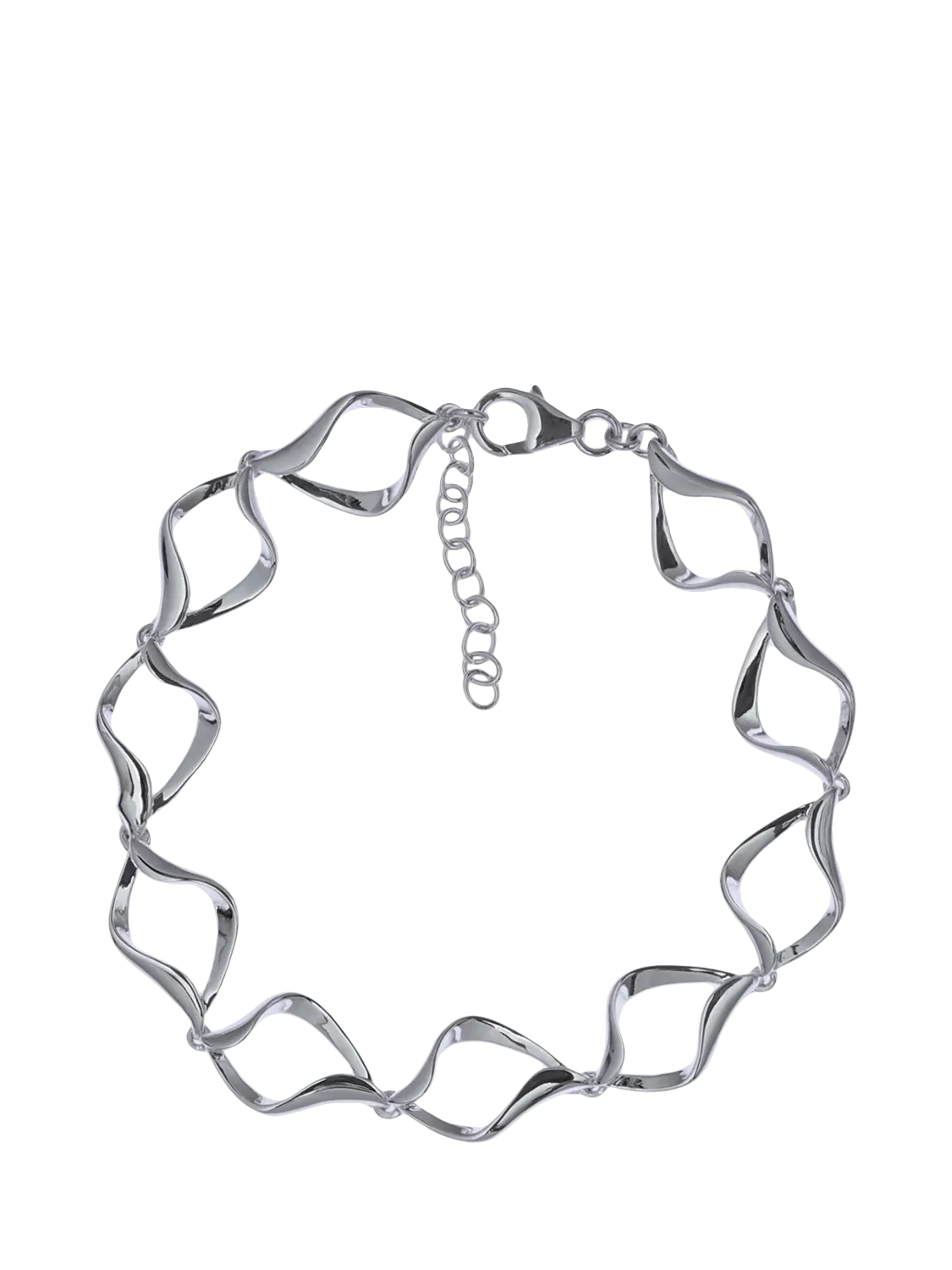 Crafted from high-polish sterling silver, the interlocking open links catch the light beautifully. Wear it solo for minimalist impact or stack it with delicate chains for a textured look. Presented in a branded gift box.