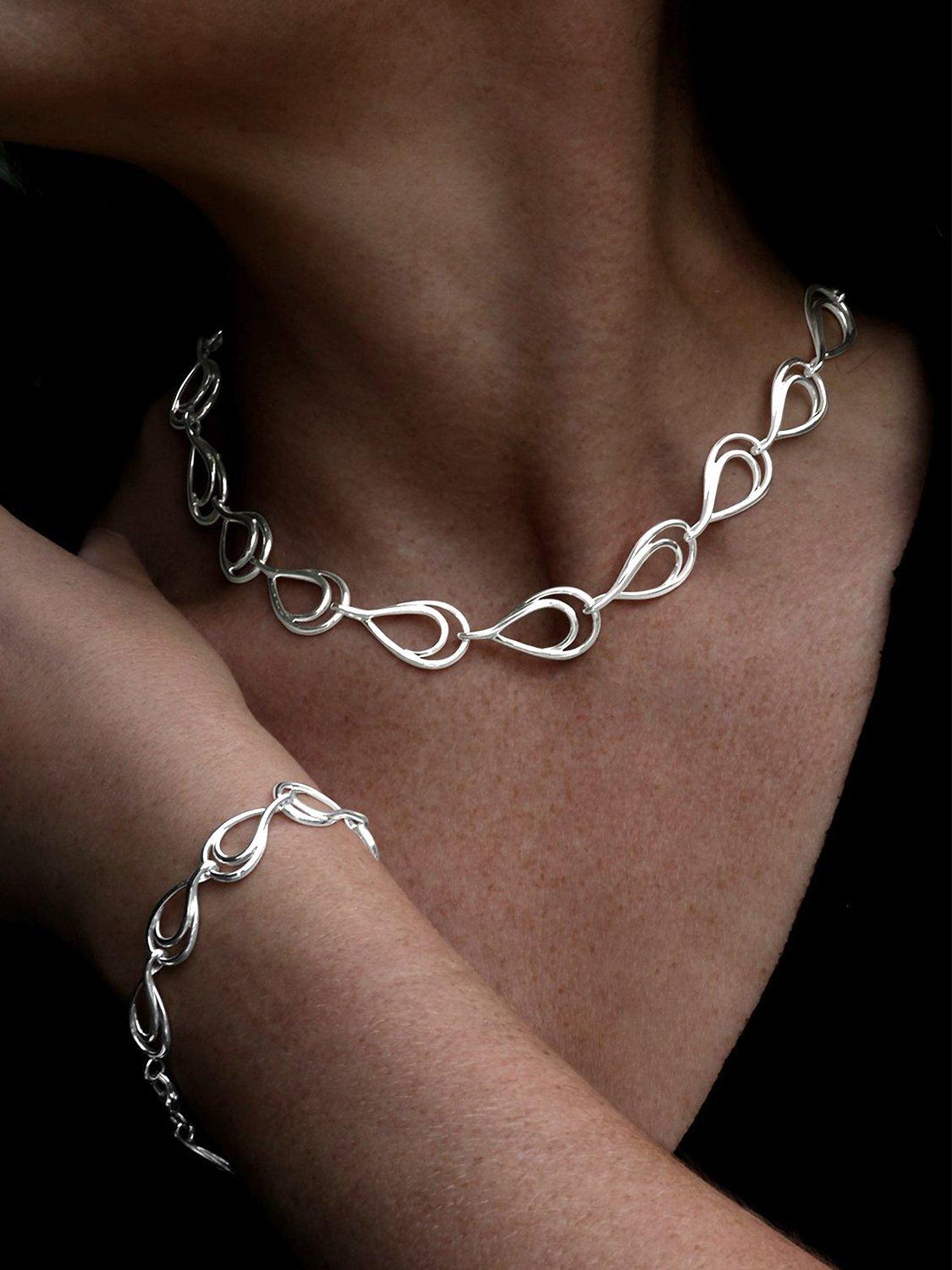 Featuring tear drop shapes linked together to form a pretty and elegant piece of jewellery, fastened with a classic lobster clasp.