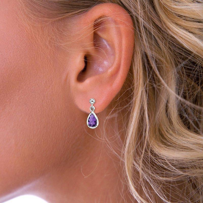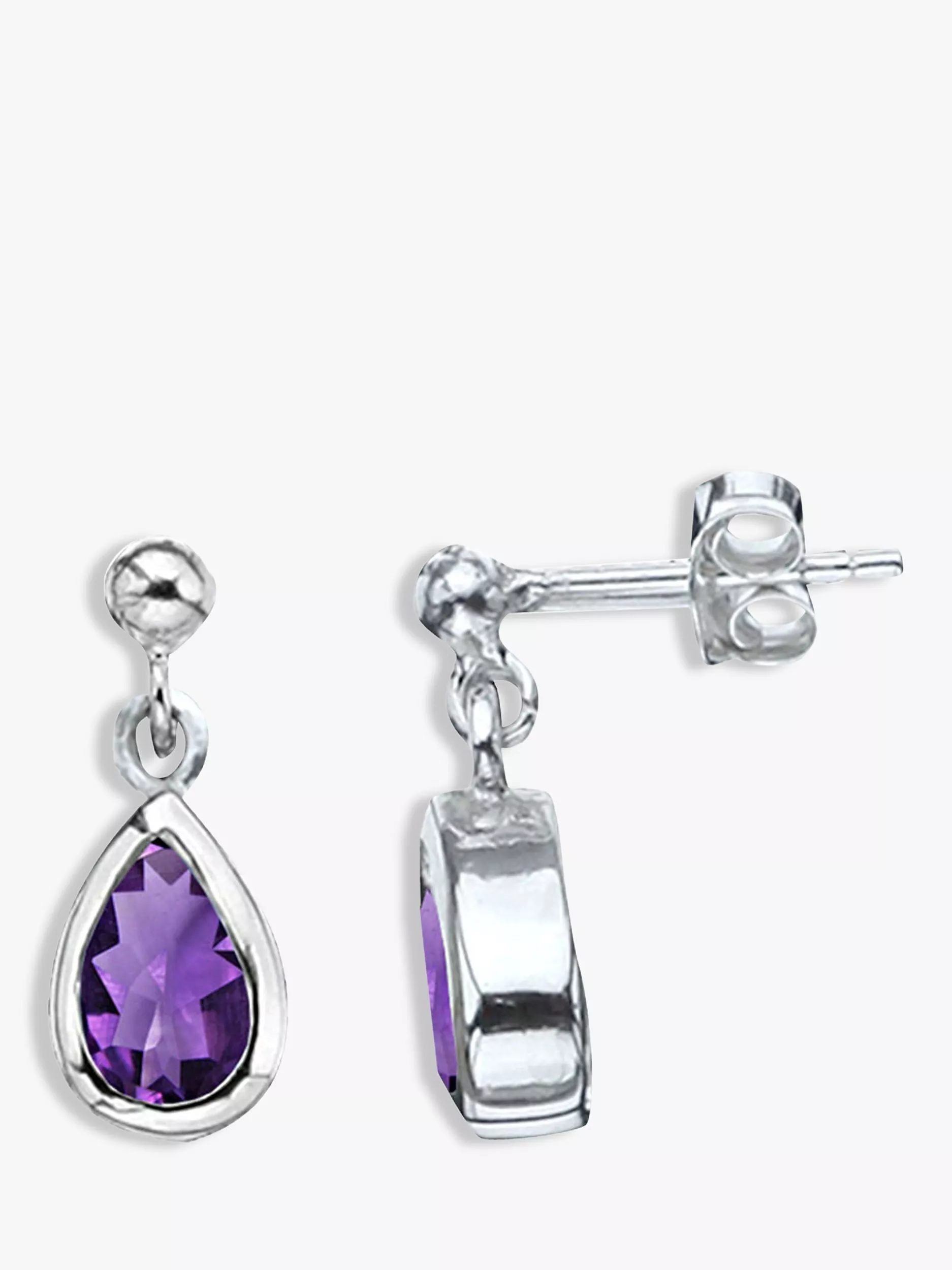 Crafted from sterling silver, the pair is shaped into a classic teardrop and features a faceted semi-precious stone or a cubic zirconia and traditional post fittings.