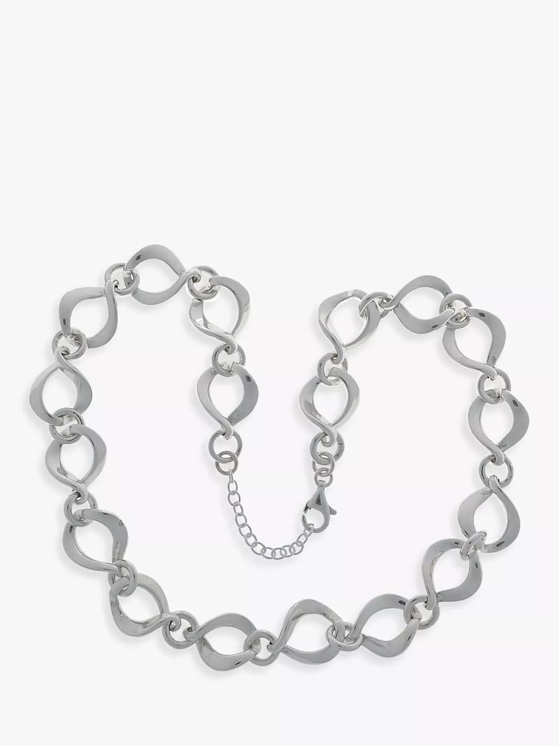A link necklace from Nina B. Comprised of substantial sterling silver links, in elegantly twisted shapes. Fastens with a lobster clasp.
