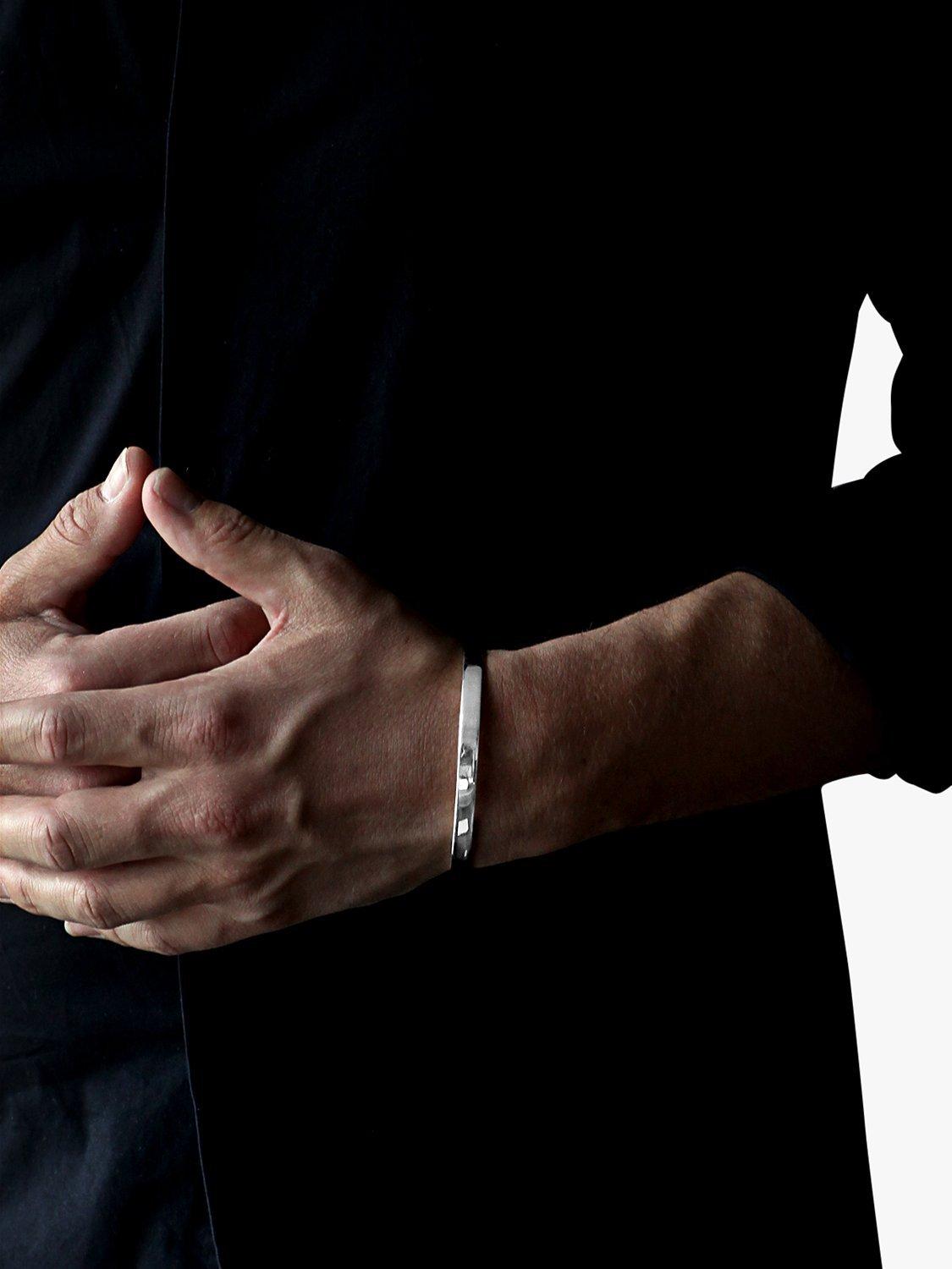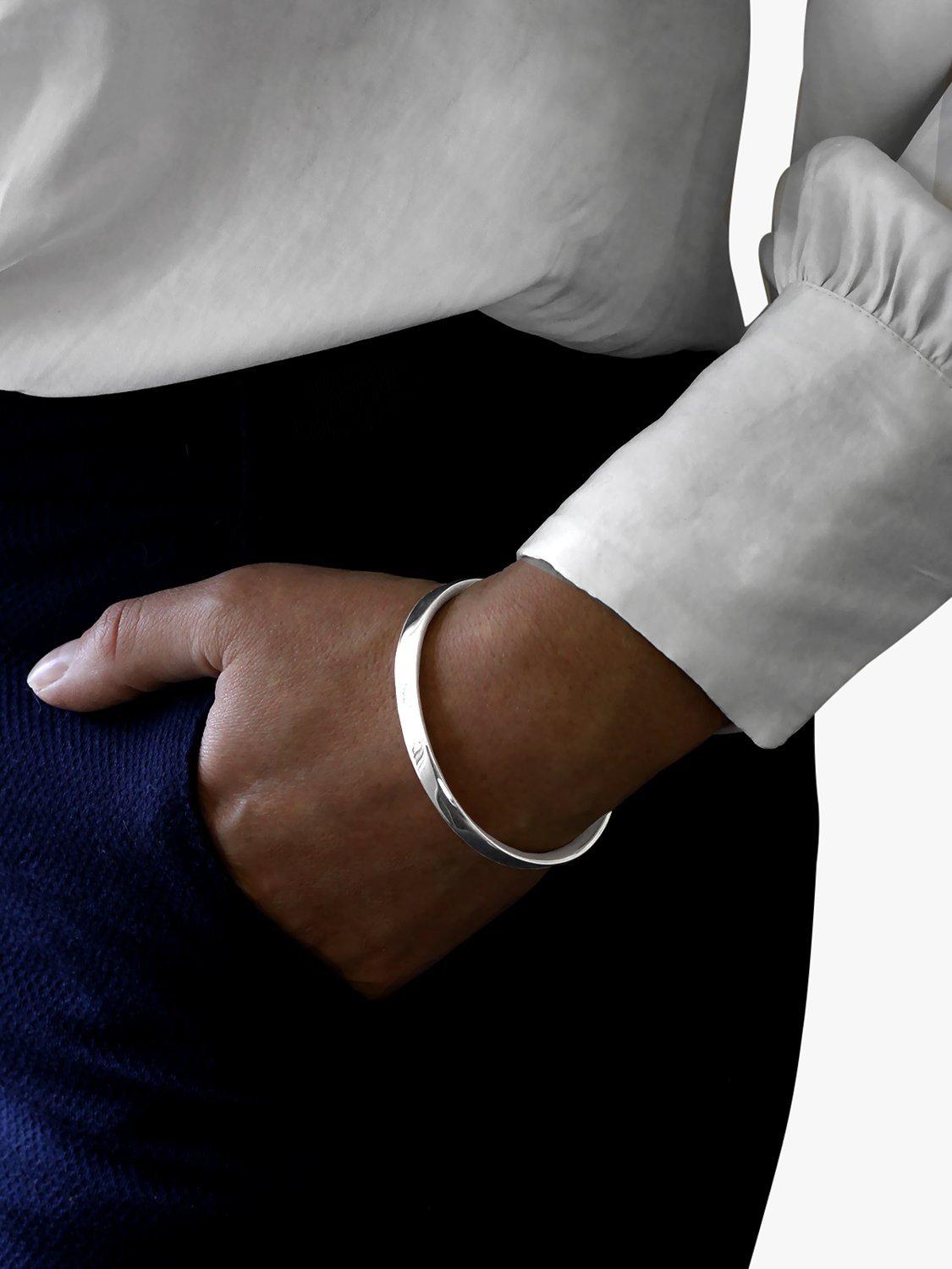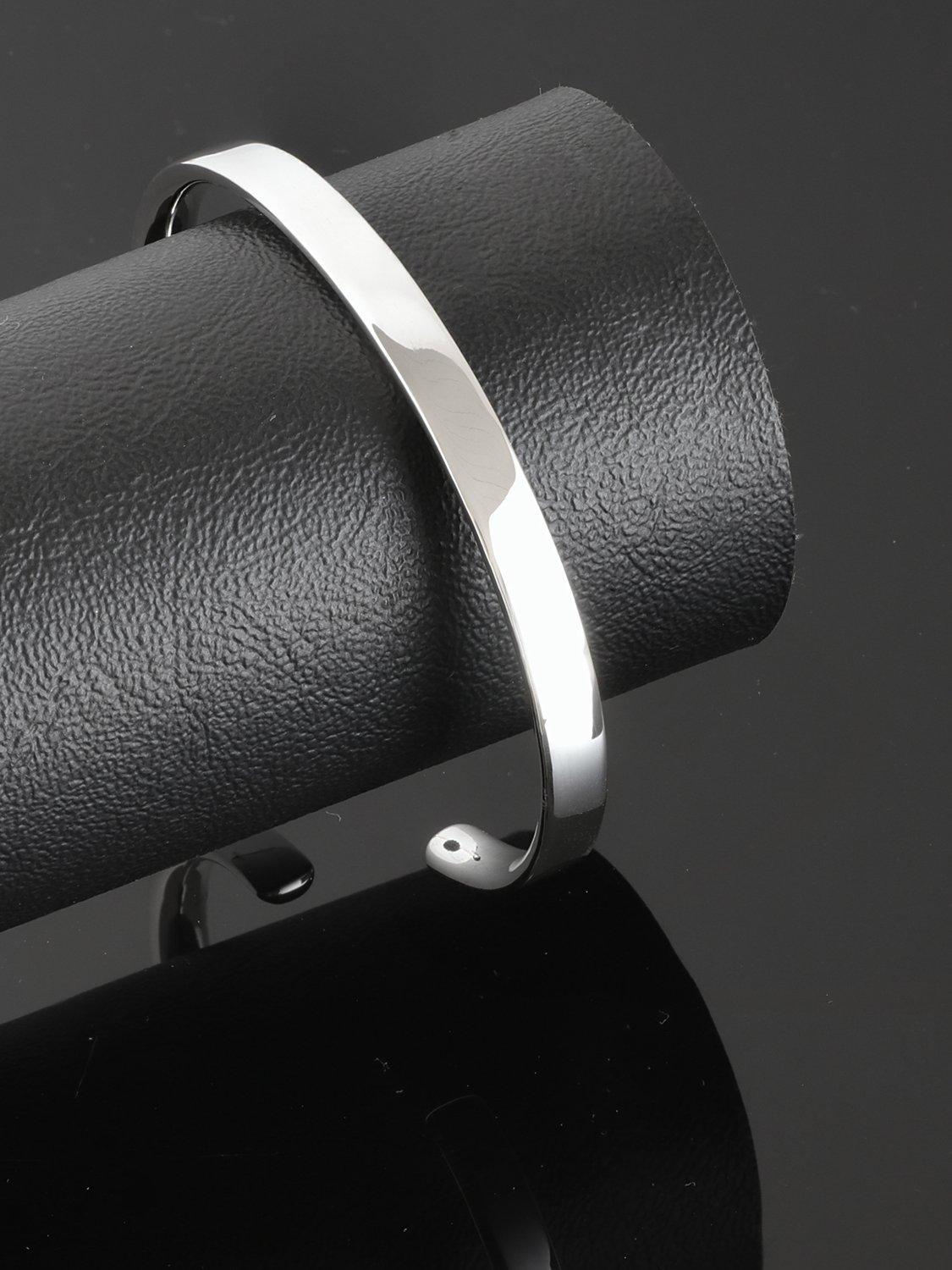 A beautiful piece, this Nina B bangle lends itself to versatility. With an open end, the design adapts effortlessly to the wrist. It has a subtle texture making it more interesting.