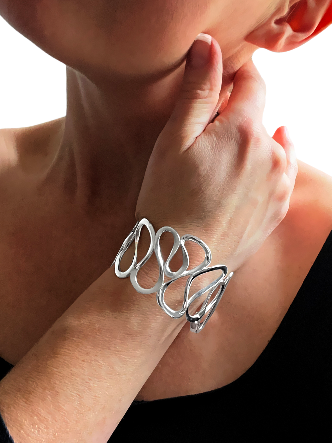 The lustrous sterling silver is fashioned into an organically wavy design that is both intriguing and fashion-forward.