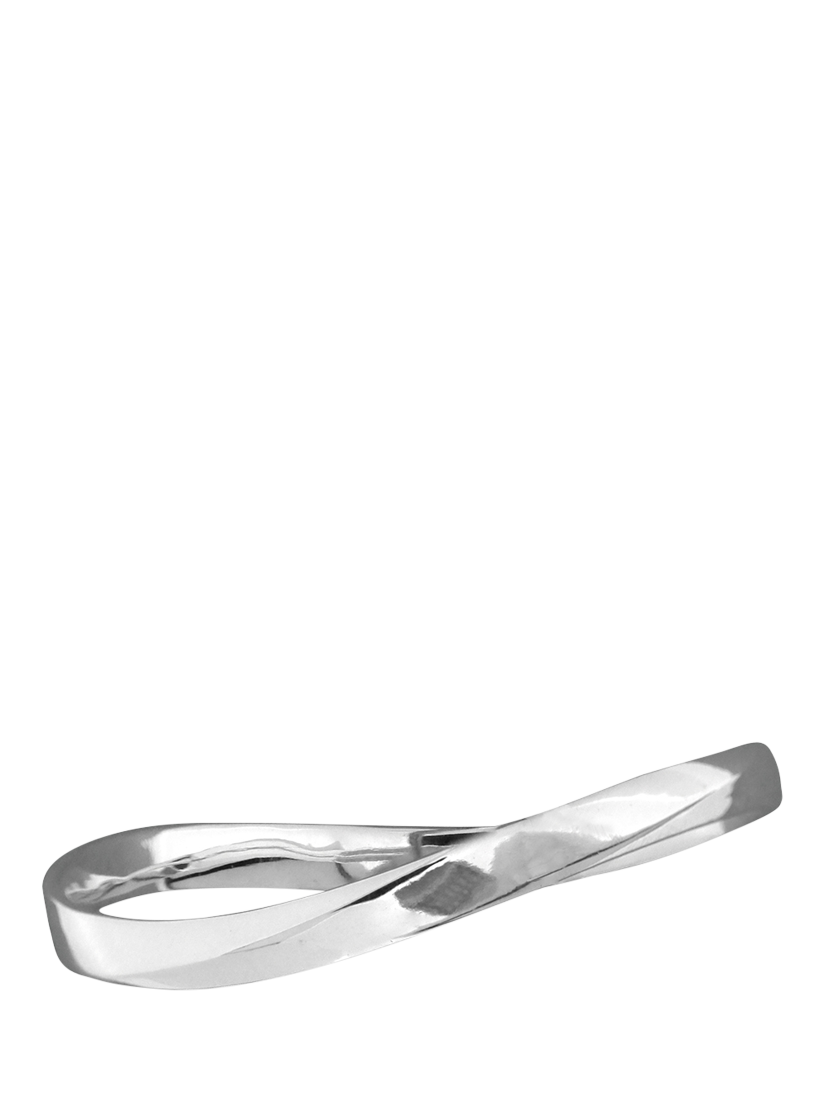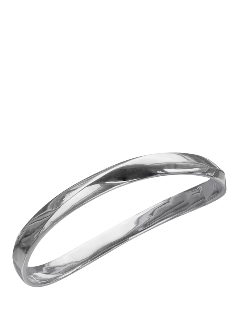A polished oval bangle made from solid sterling silver. This substantial slip-on bangle has a pleasing wave shape.