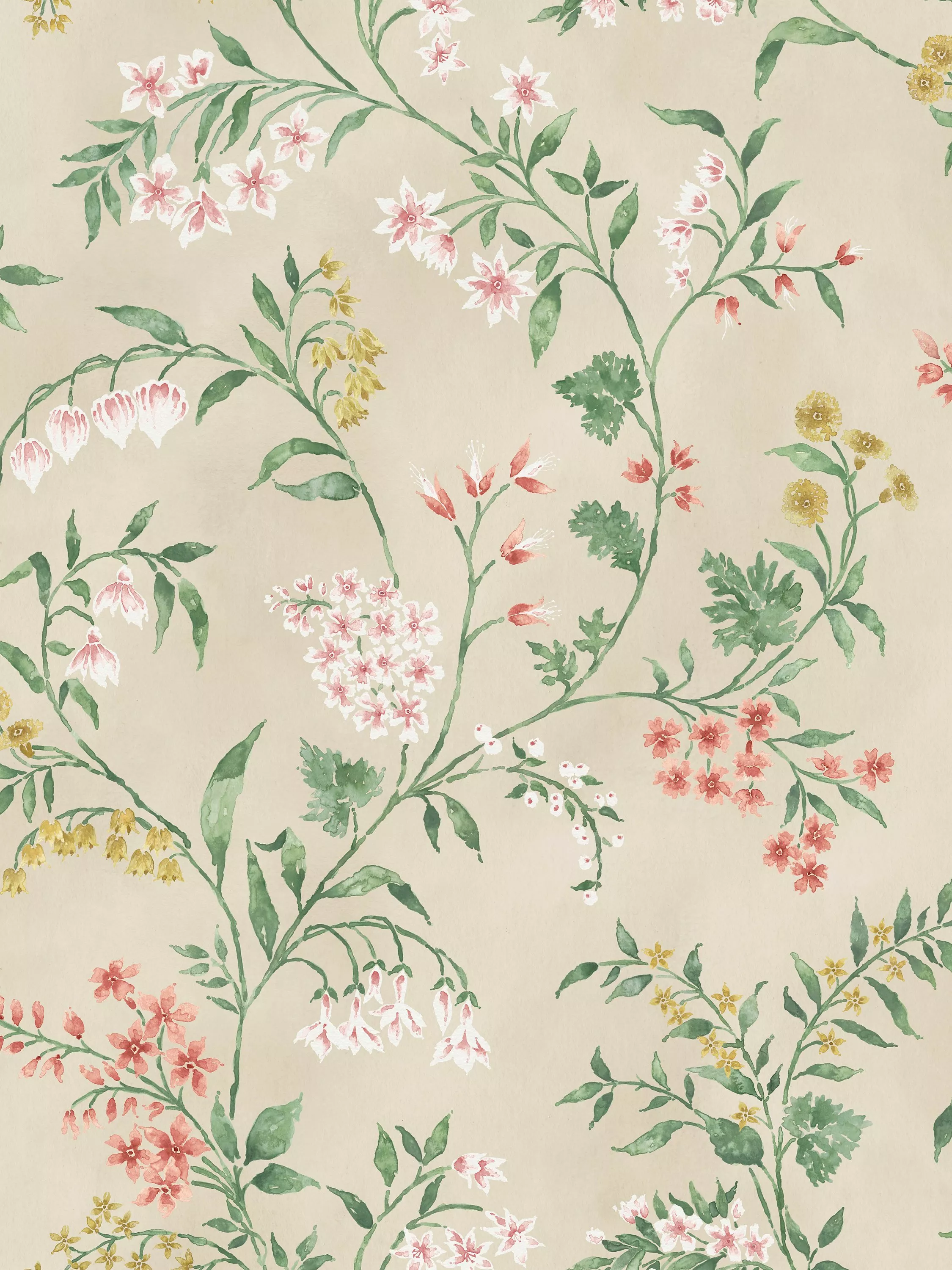 A delicate floral design featuring bell flowers and fuchsias in a trailing repeat.
