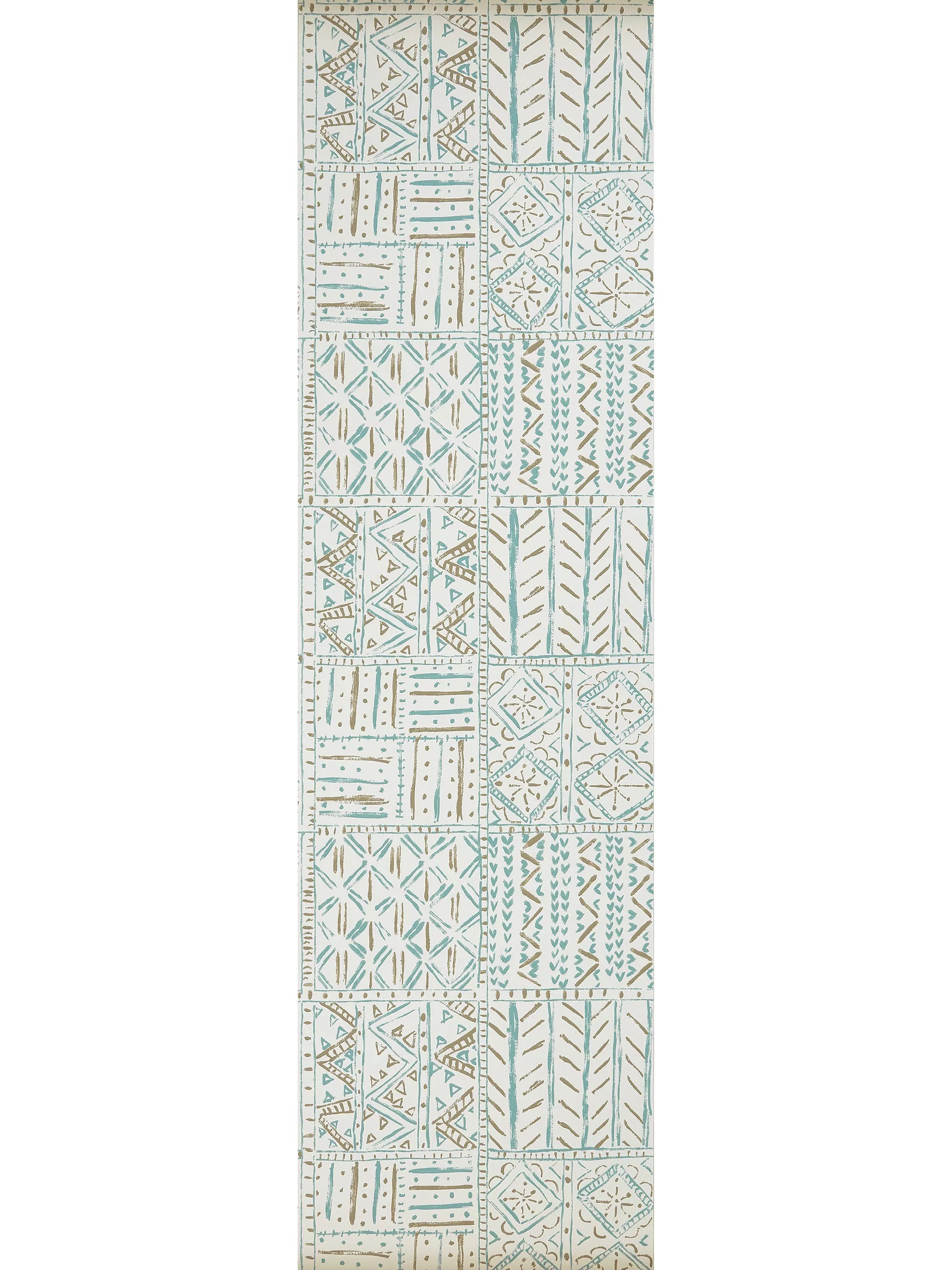Painterly brushstrokes form informal geometric patterns within squares. The design is printed on a textured, fibrous ground.