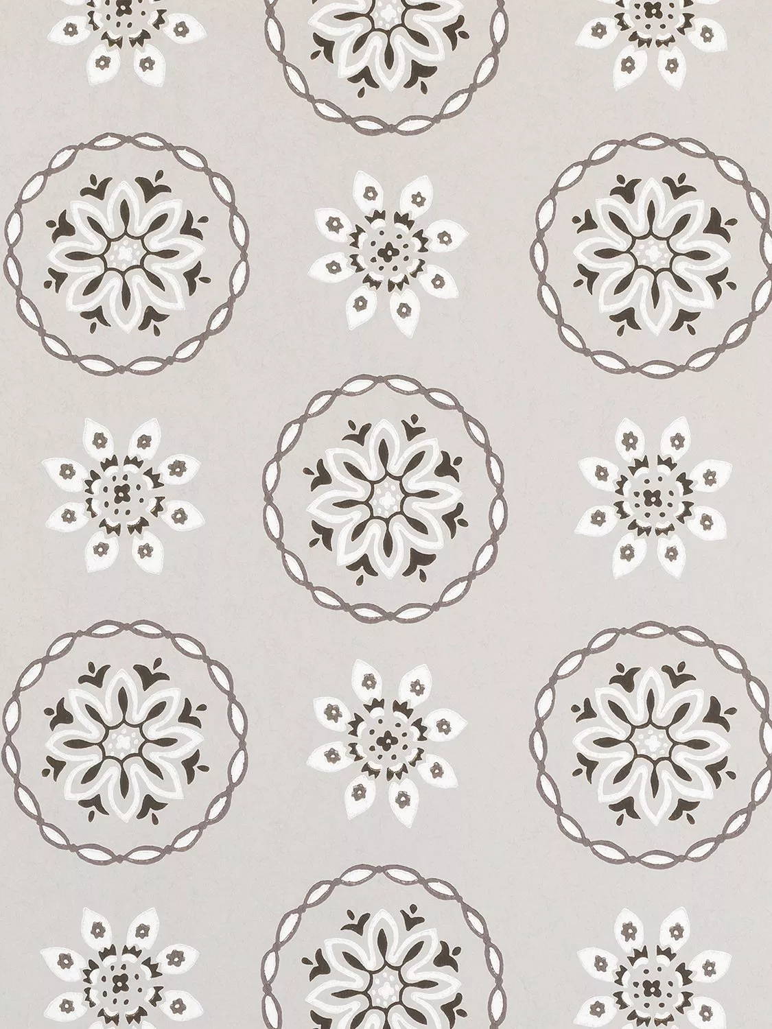 Star-shaped flowers, set in roundels and printed on a textured paper.