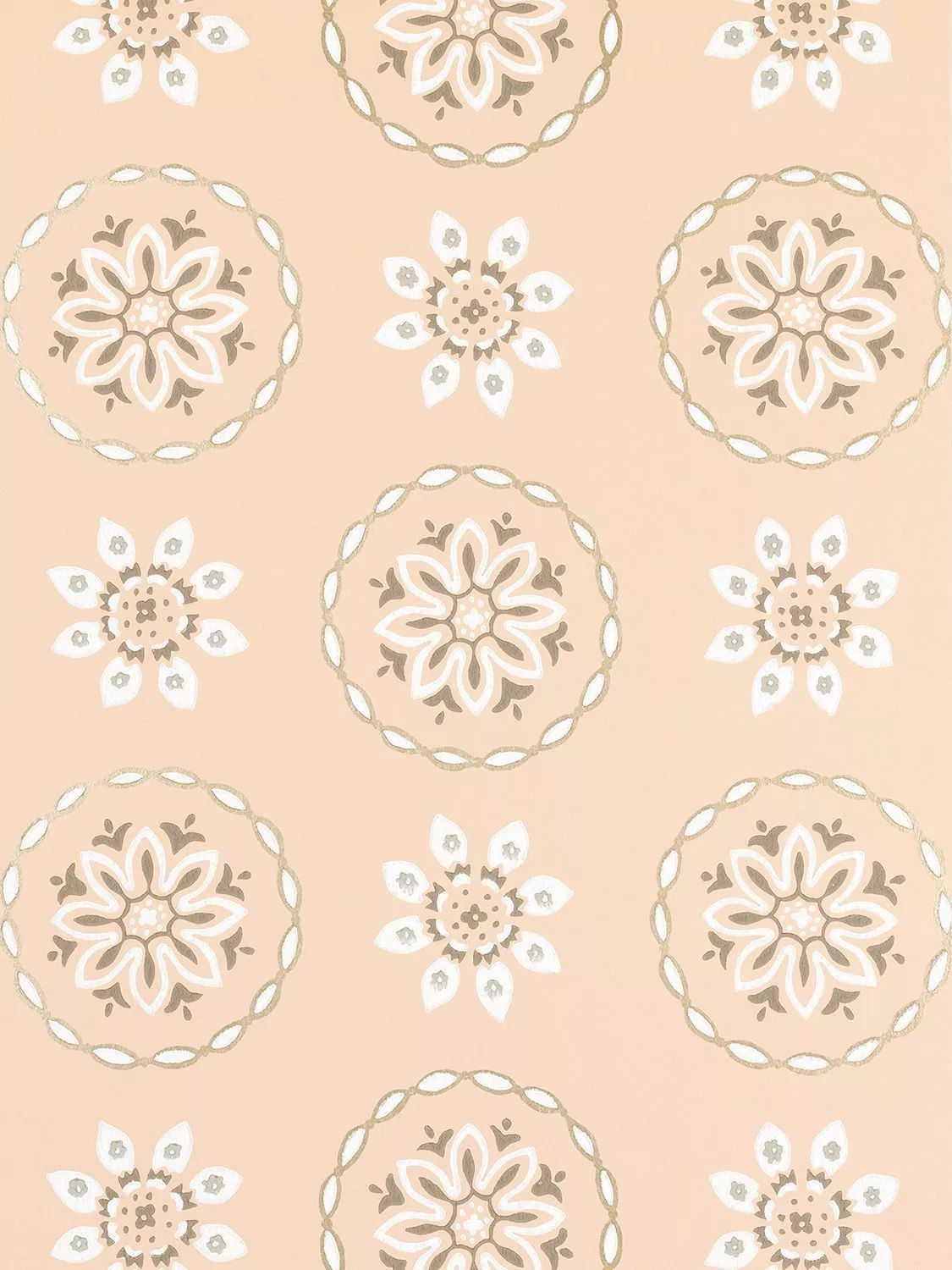 Star-shaped flowers, set in roundels and printed on a textured paper.