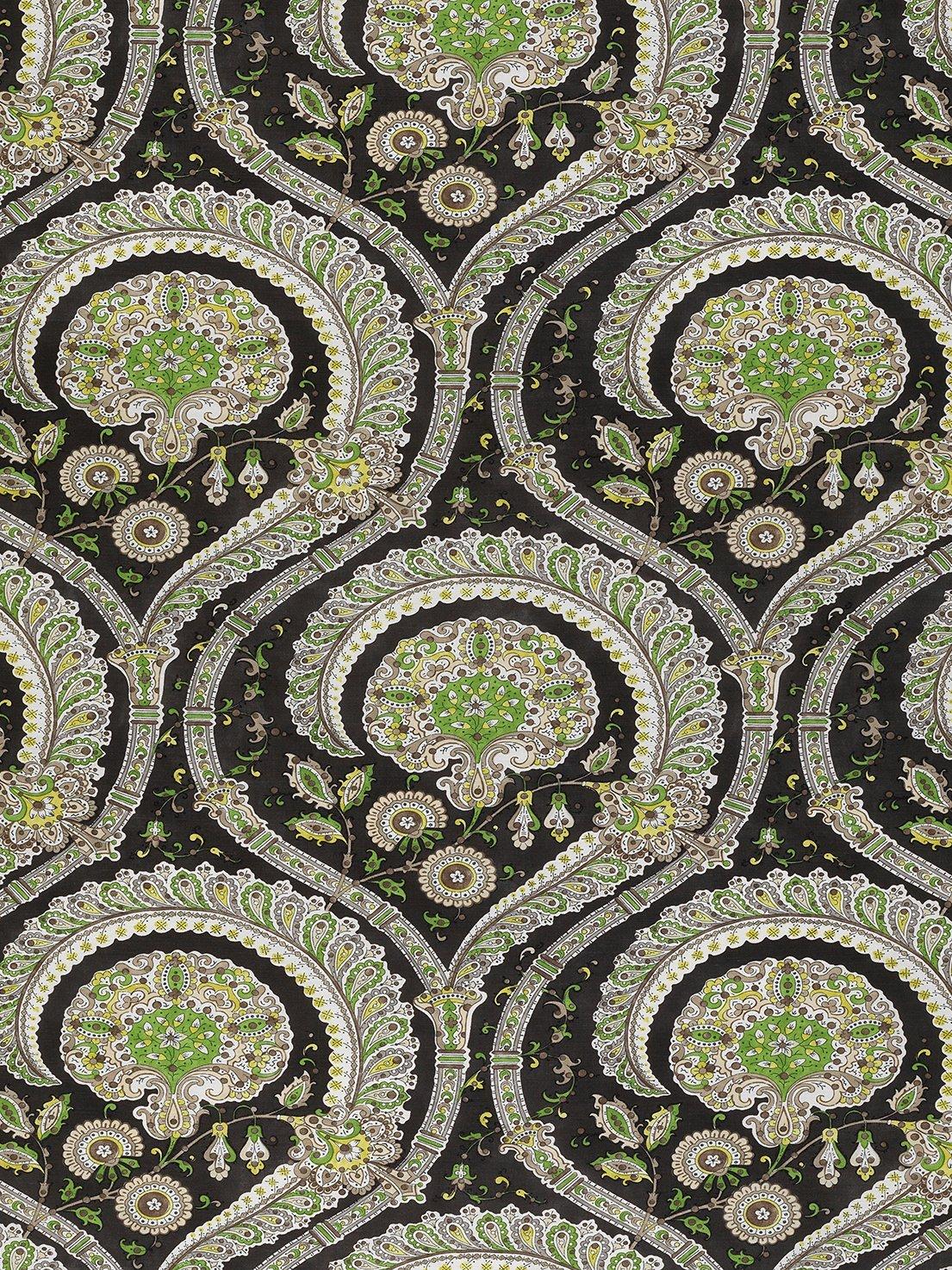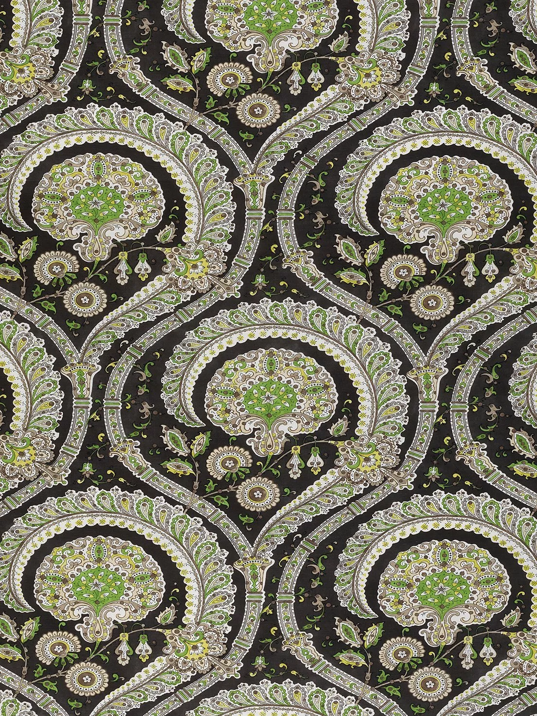 A paisley inspired ogee design is printed on linen-union offering both rich colour combinations and a gentle grey for a contemporary twist.