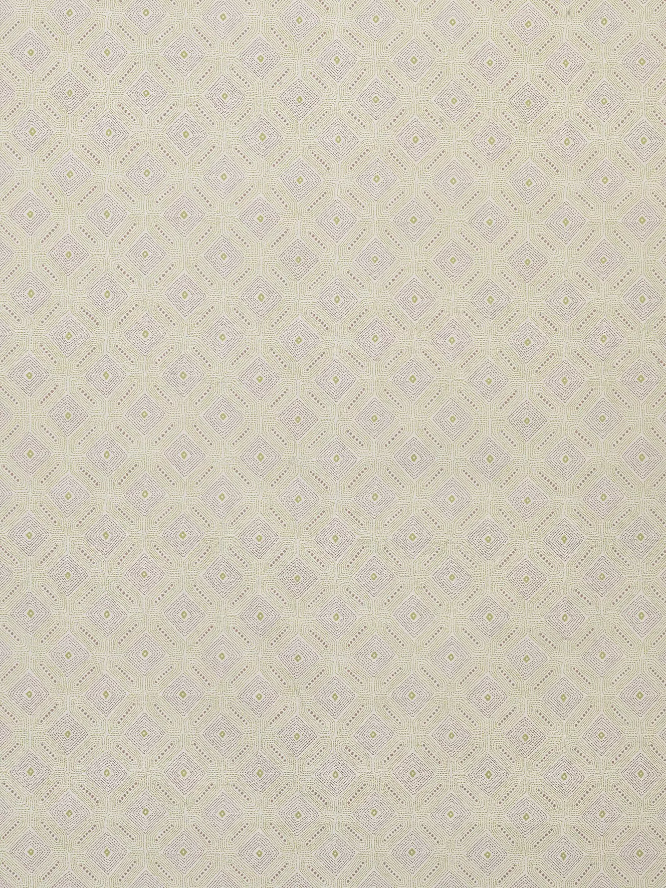 A geometric jacquard woven with contrasting yarns to resemble stitch work. Named after one of the artist's professional models.