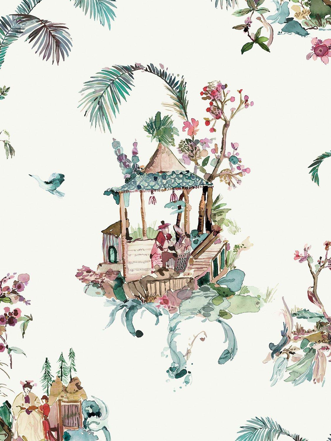 A delicate floral design featuring bell flowers and fuchsias in a trailing repeat.
