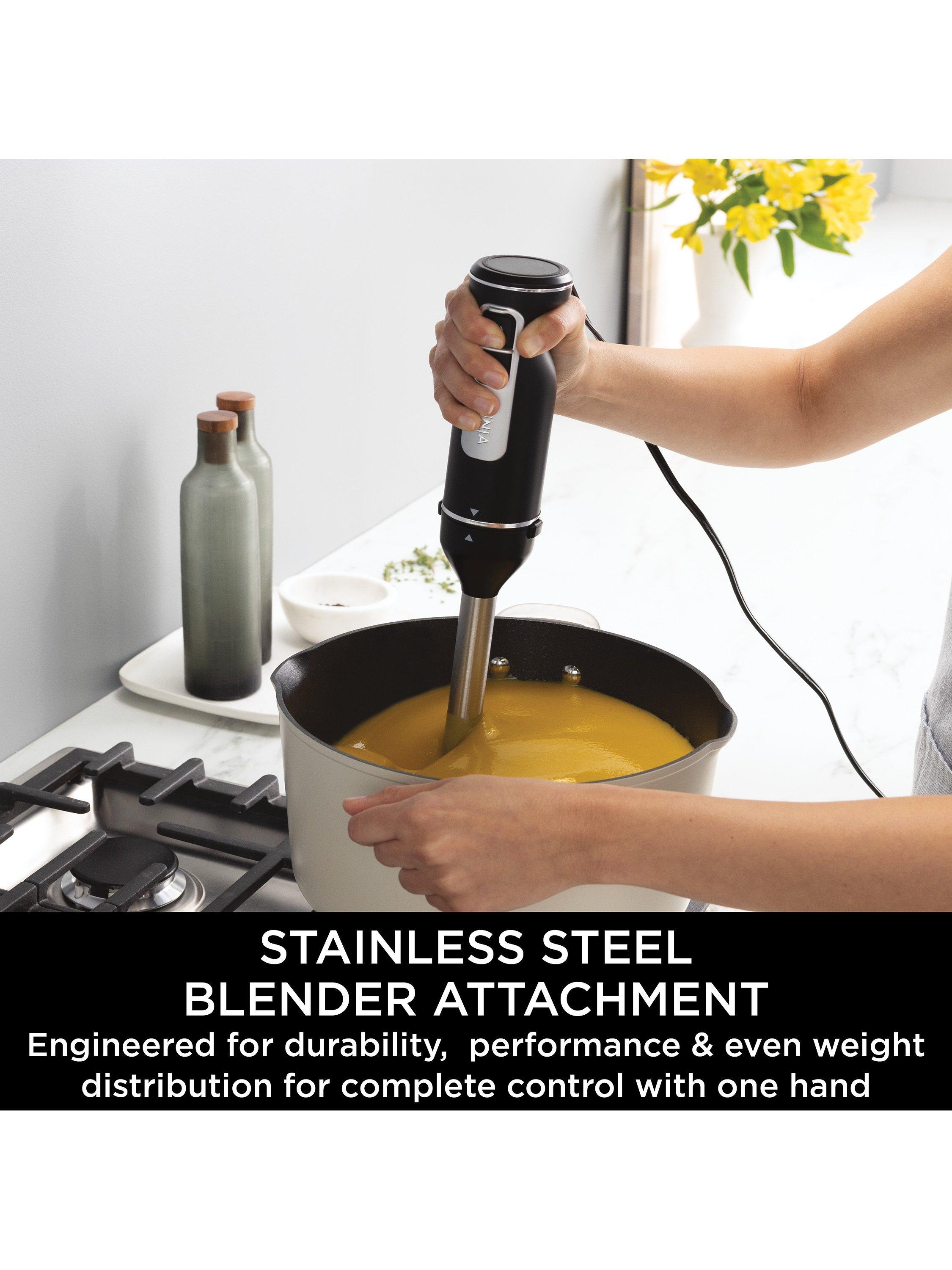 Create silky-smooth soups, sauces, purees and dips with the stainless steel immersion blender attachment, engineered for durability and performance. Even weight distribution gives you complete control with one hand, so you can easily add ingredients or change speeds while blending.