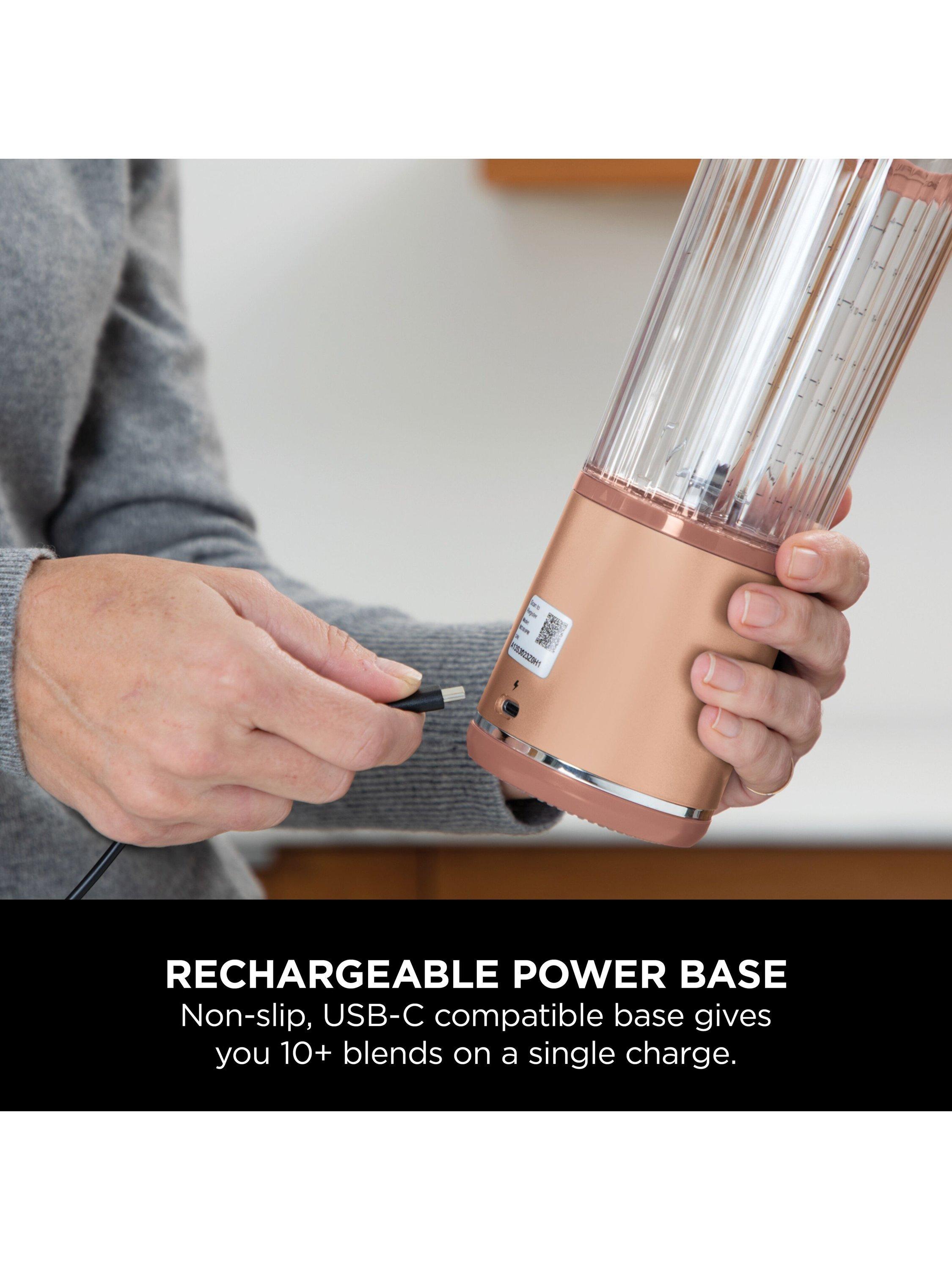 The rechargeable USB-C base gives you more than 10 blends on a single charge. A full charge takes about 2 hours.
