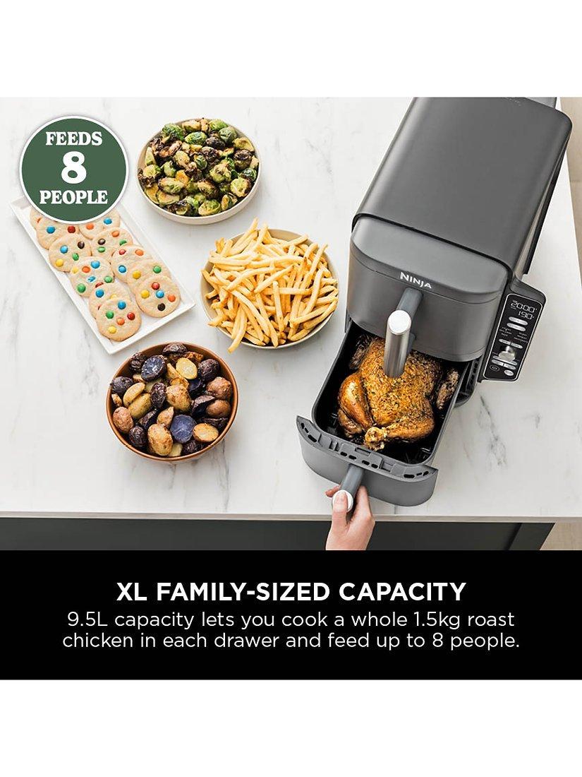 Wish you could fit a double air fryer in your kitchen, but running low on worktop space? Introducing the Ninja Double Stack XL 2-Drawer Air Fryer. This stacked air fryer is 30% slimmer* without compromising on capacity – perfect for smaller kitchens, large families and entertaining.