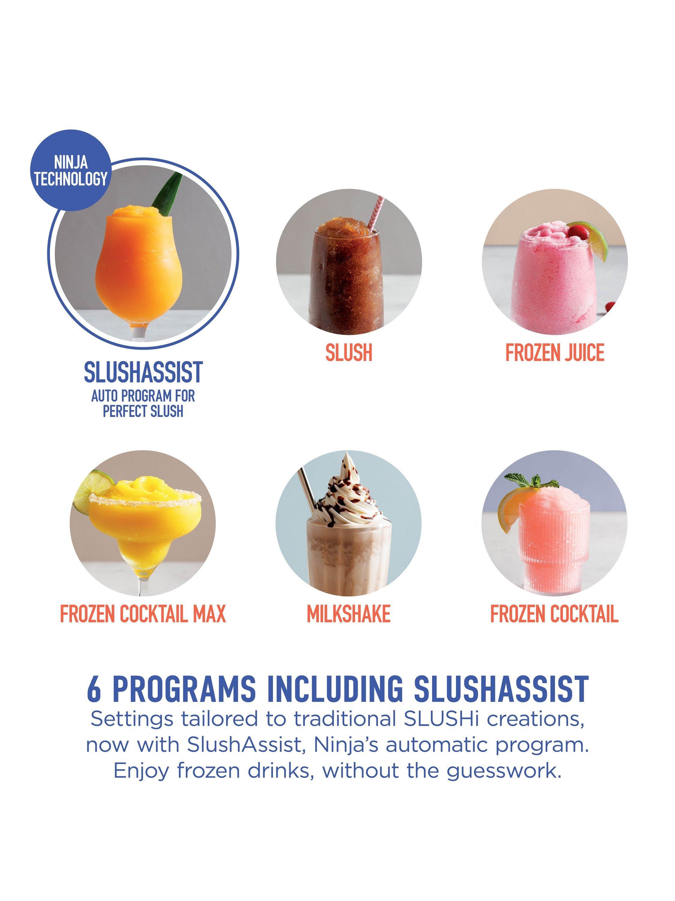 Explore 6 functions: Frozen Juice, Frozen Cocktail, Frozen Cocktail Max, Slush, Milkshake & SlushAssist mode, that auto-senses ingredients & adjusts for hands-free slushing. Includes dishwasher-safe drip tray.