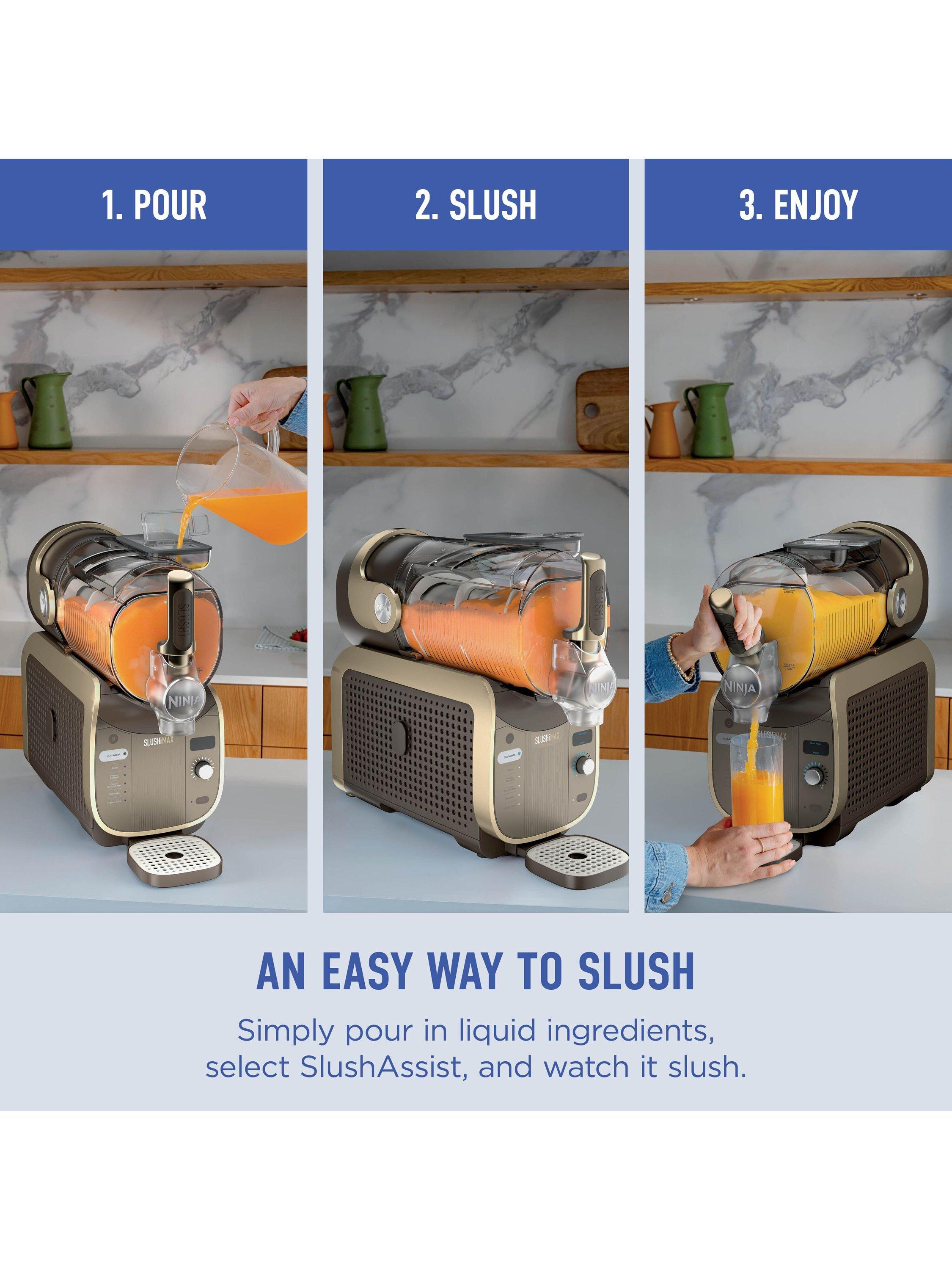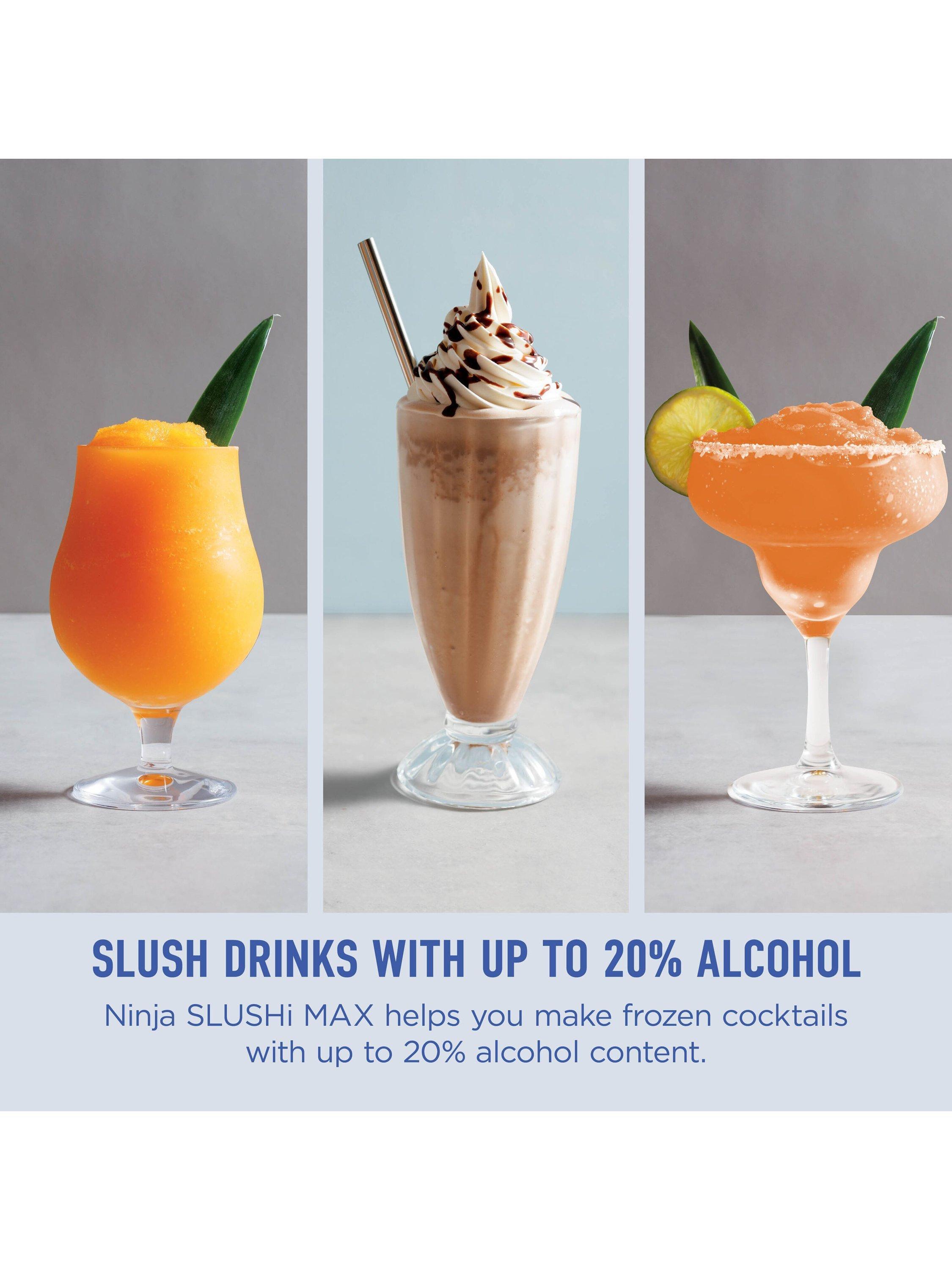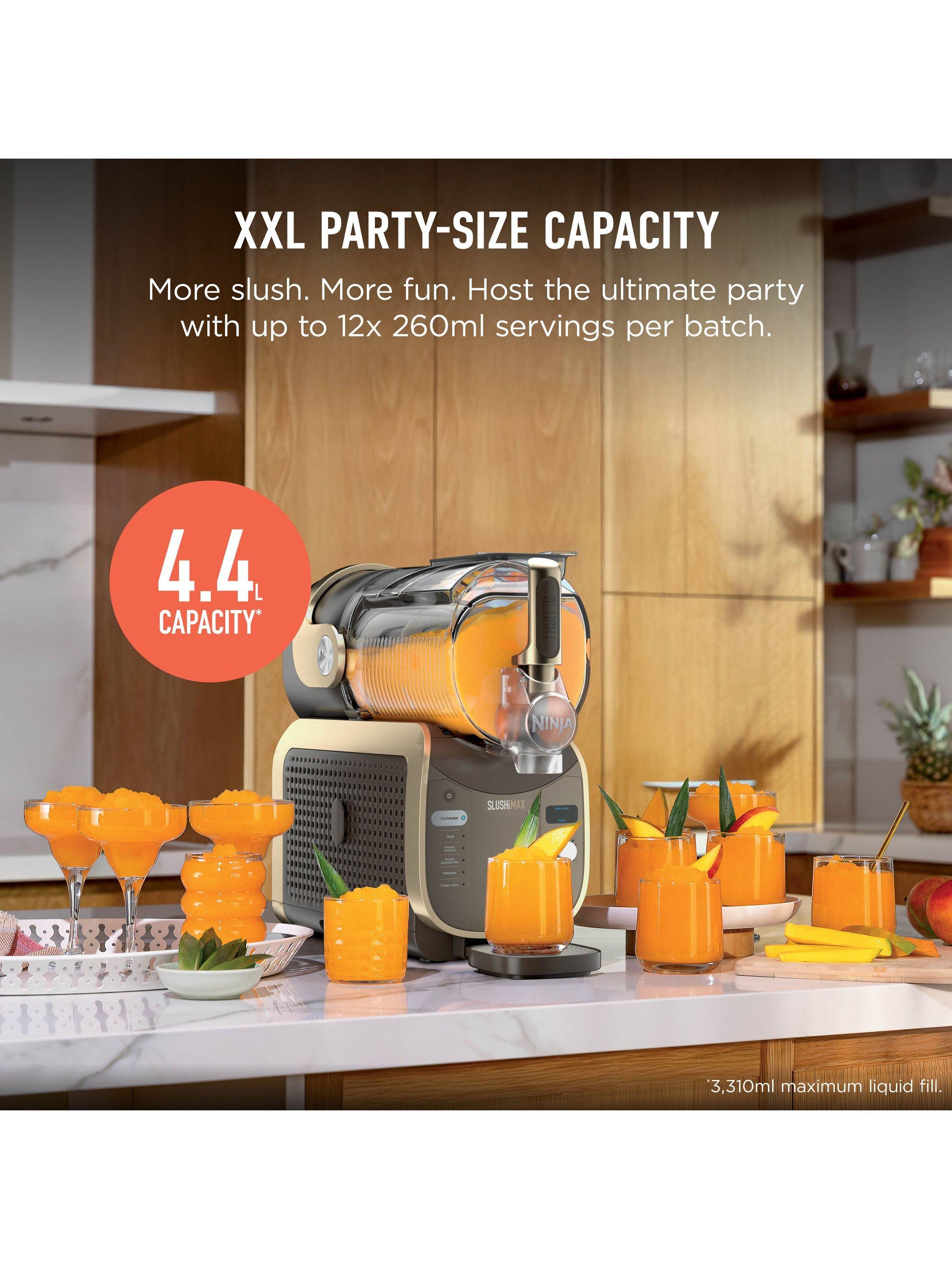 Introducing Ninja SLUSHi MAX, the frozen drink maker that helps you turn almost any drink into perfect slush*. (*Must include sugar or sugar alternatives.) Featuring RapidChill Pro Technology and a generous 4.4L vessel*, easily create frozen drinks, with no need to add ice. (*3,310ml maximum liquid fill.)