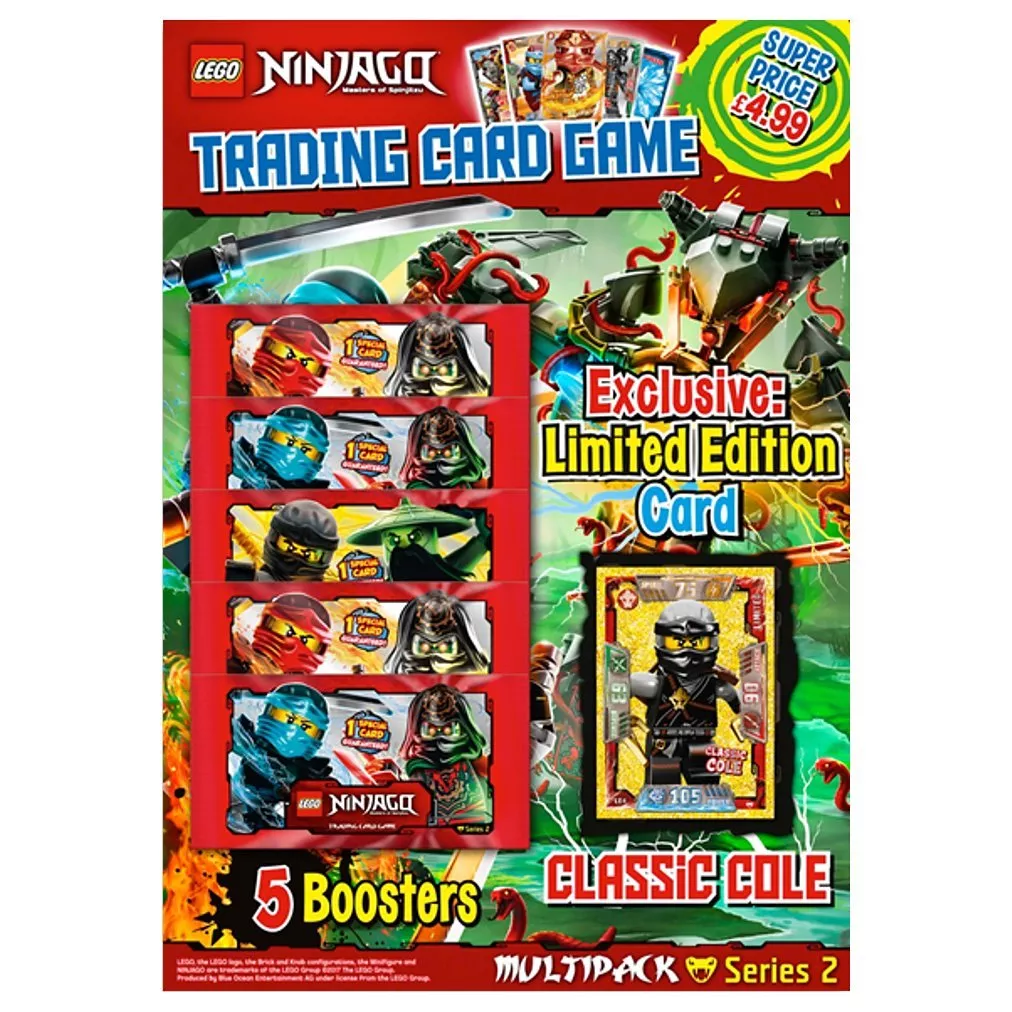 The Lego Ninjago TCG multipack contains 5 booster packs (5 cards at random in each) and one exclusive Limited Edition Card.