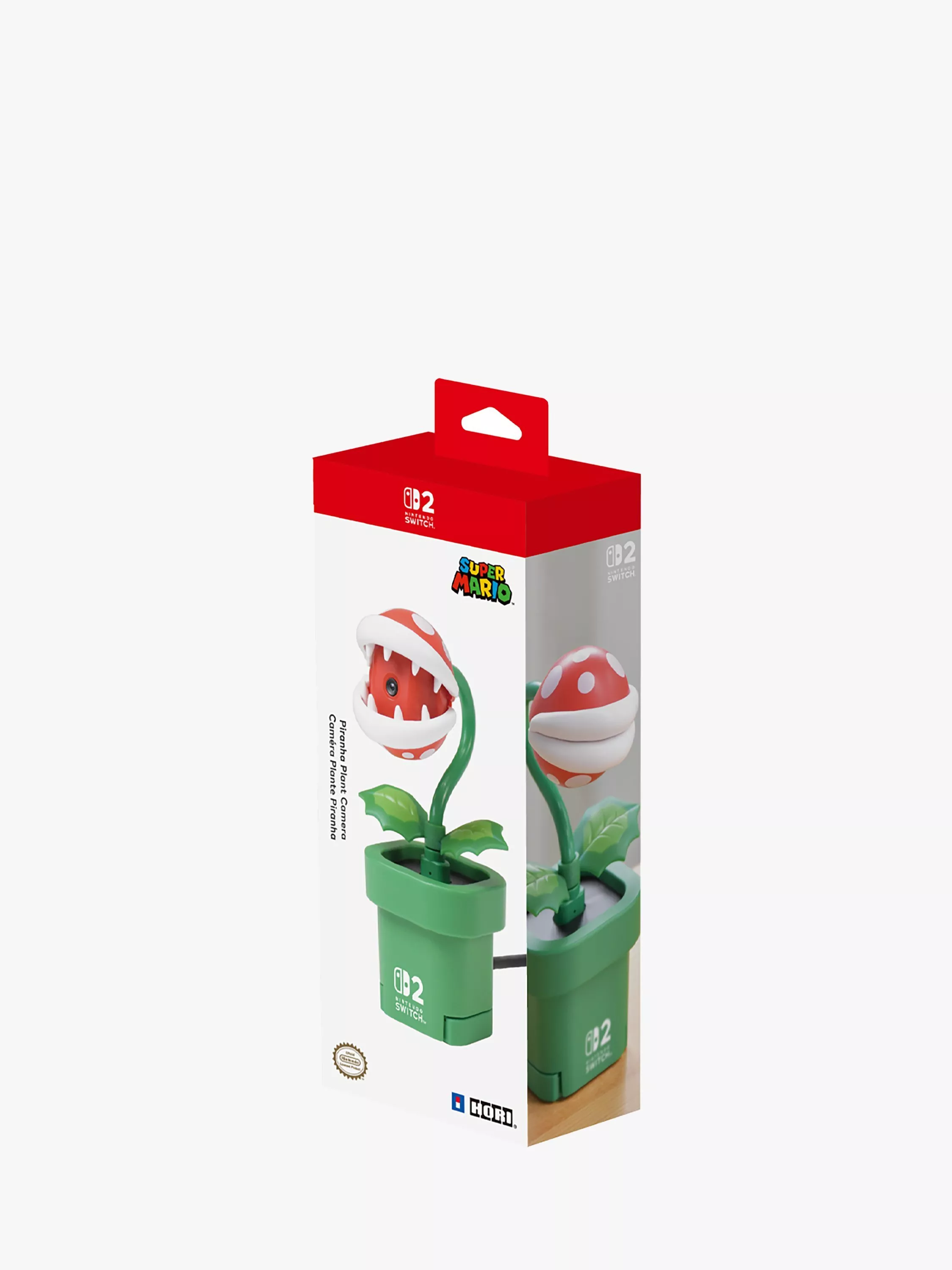 Enjoy video chat anywhere with the Hori Piranha Plant Camera for Nintendo Switch 2! The adorably ferocious Piranha Plant Camera captures all your favourite gaming moments with family and friends wherever you play*. The detachable camara unit has a flexible neck to capture the perfect angle, and the mouth can be opened or closed to cover the camera lens!
