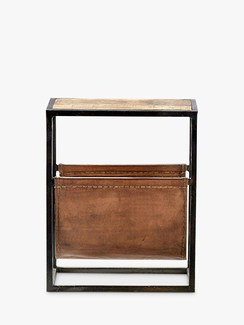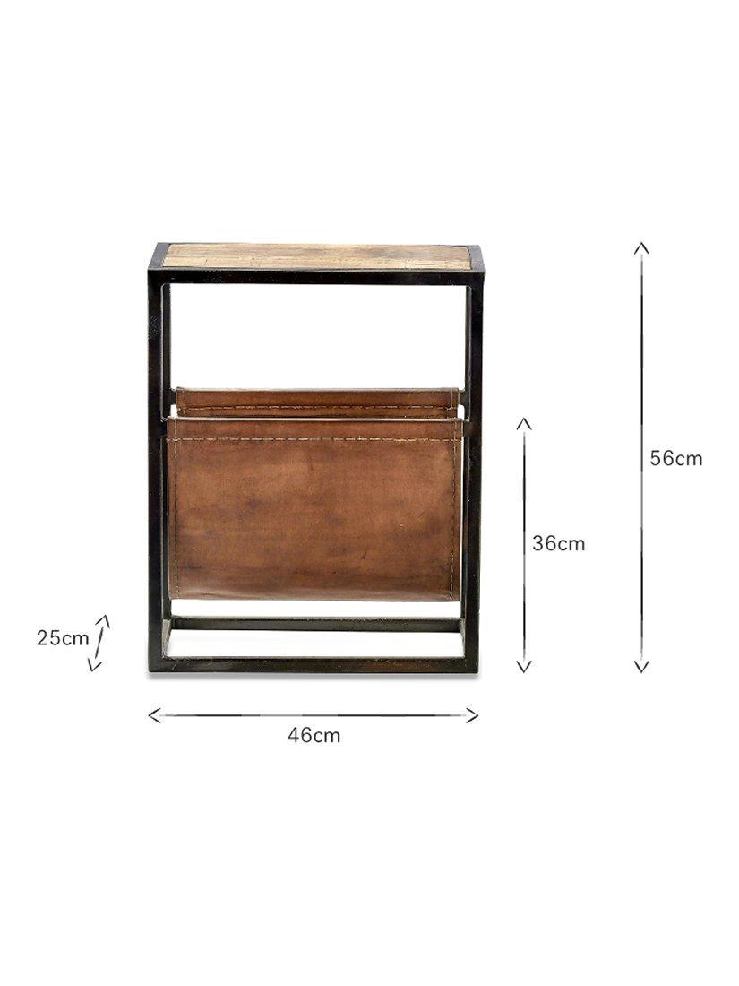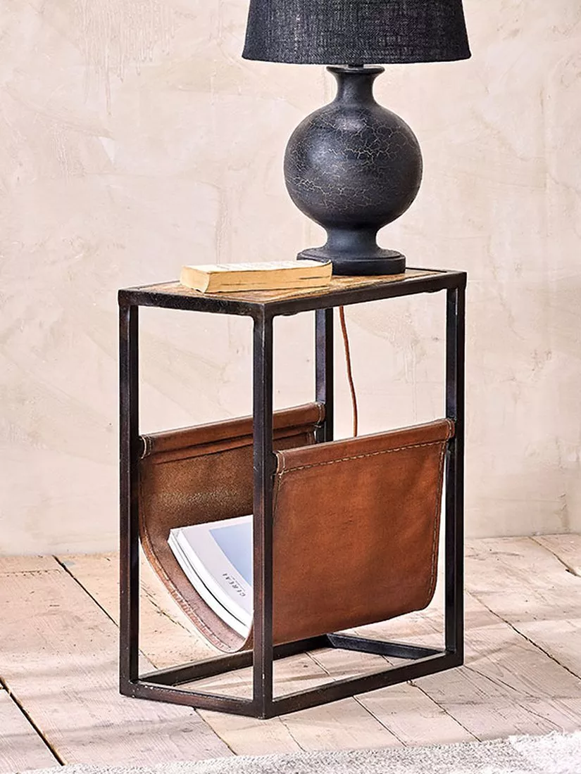The nkuku Alera side table is as practical as it is stylish. The framework is soldered from iron, offering a sturdy frame that is built to last. The leather compartment offers space for books and magazines while adding to the beautiful aesthetic of the piece.