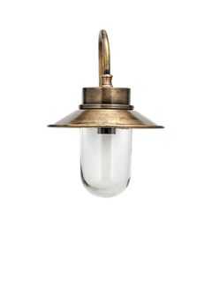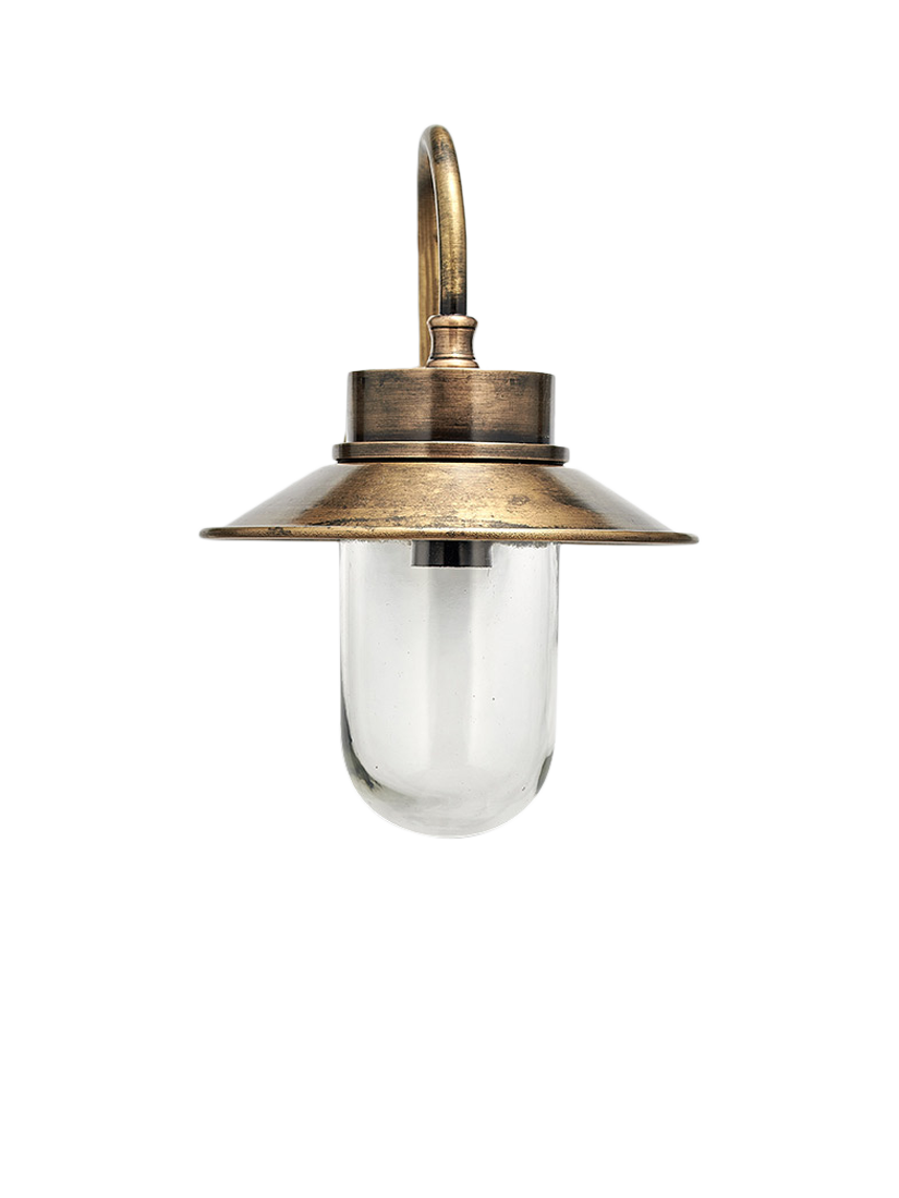 The Alwar outdoor light adds a sense of grace to any outdoor setting. The antique brass patina of the stylish swan neck and lamp head pares elegantly with the clear glass shade.