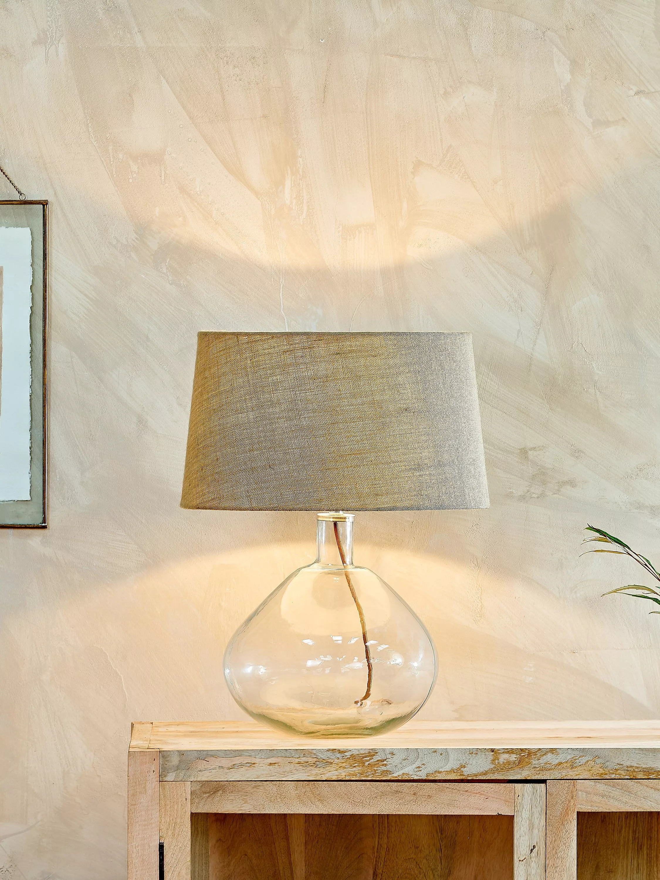 The Baba glass lamp is a nkuku bestseller. Combining elegance and style, each lamp is handmade from recycled glass by skilled artisans using traditional techniques. The glass is handblown into a mould, then hammered to create its beautiful, textured finish.