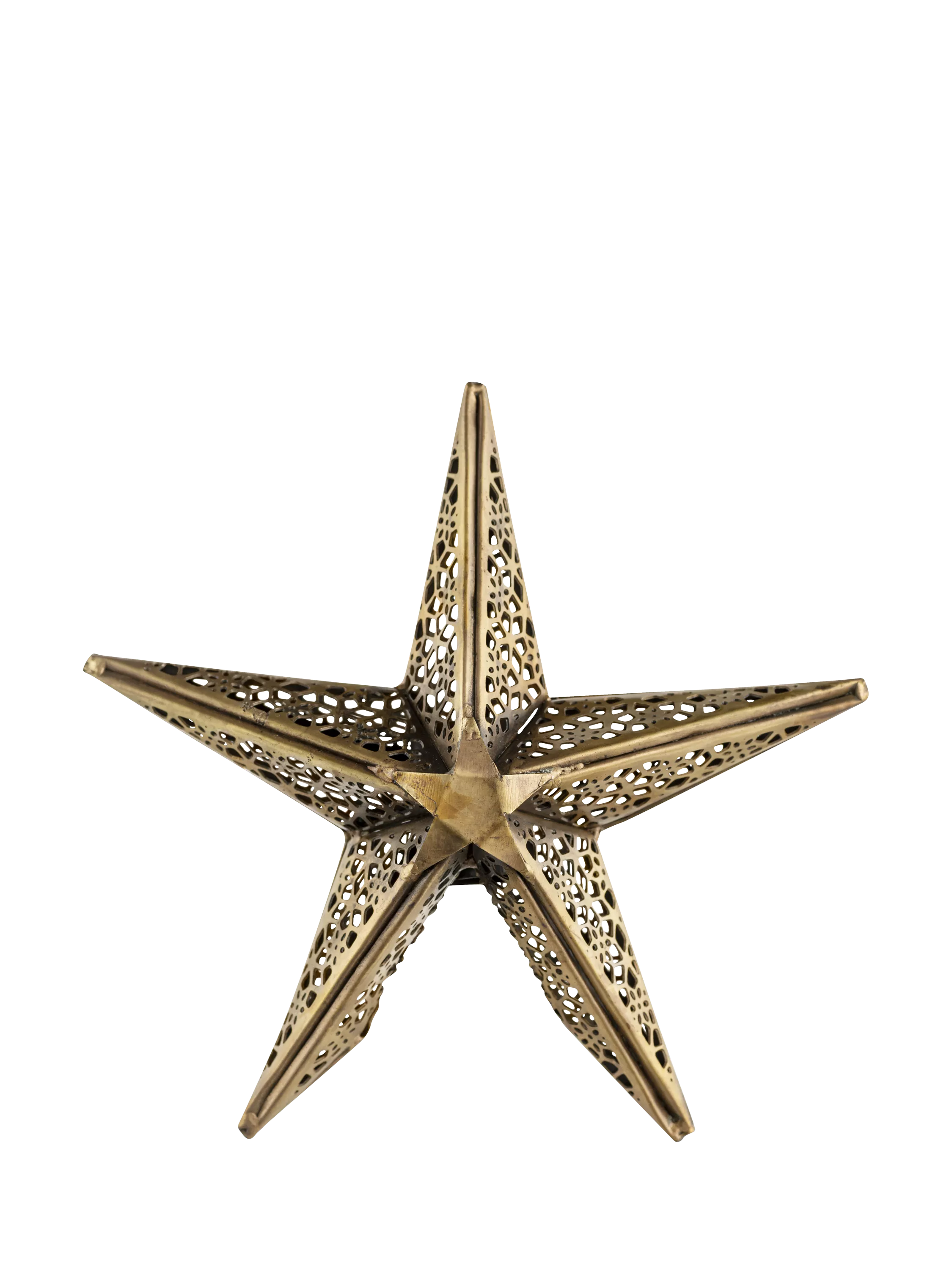 Add a flourish to your Christmas tree with this elegant star-shaped tree topper. Its crafted from brass, which gives it a sophisticated antique finish, and an intricate pattern is cut into the metal, allowing the light from your tree to shine through and cast a magical reflection.