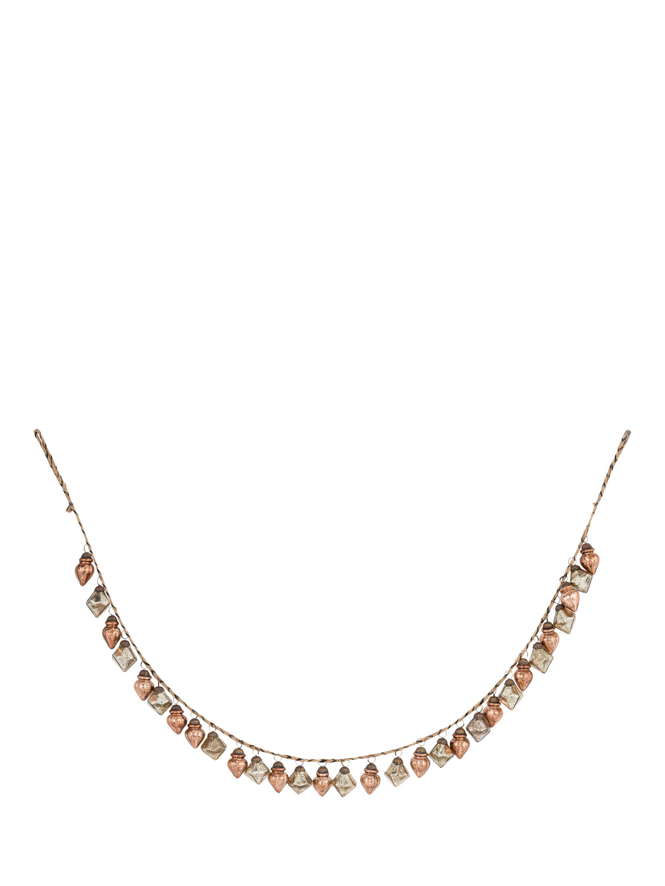 The deep tones of recycled glass are paired with elegant shapes that evoke a sense of vintage charm. Strung along a natural jute garland, it’s a tactile, versatile piece that complements a variety of interiors — beautiful whether draped across a fireplace, woven through a banister, or nestled into the branches of a tree.