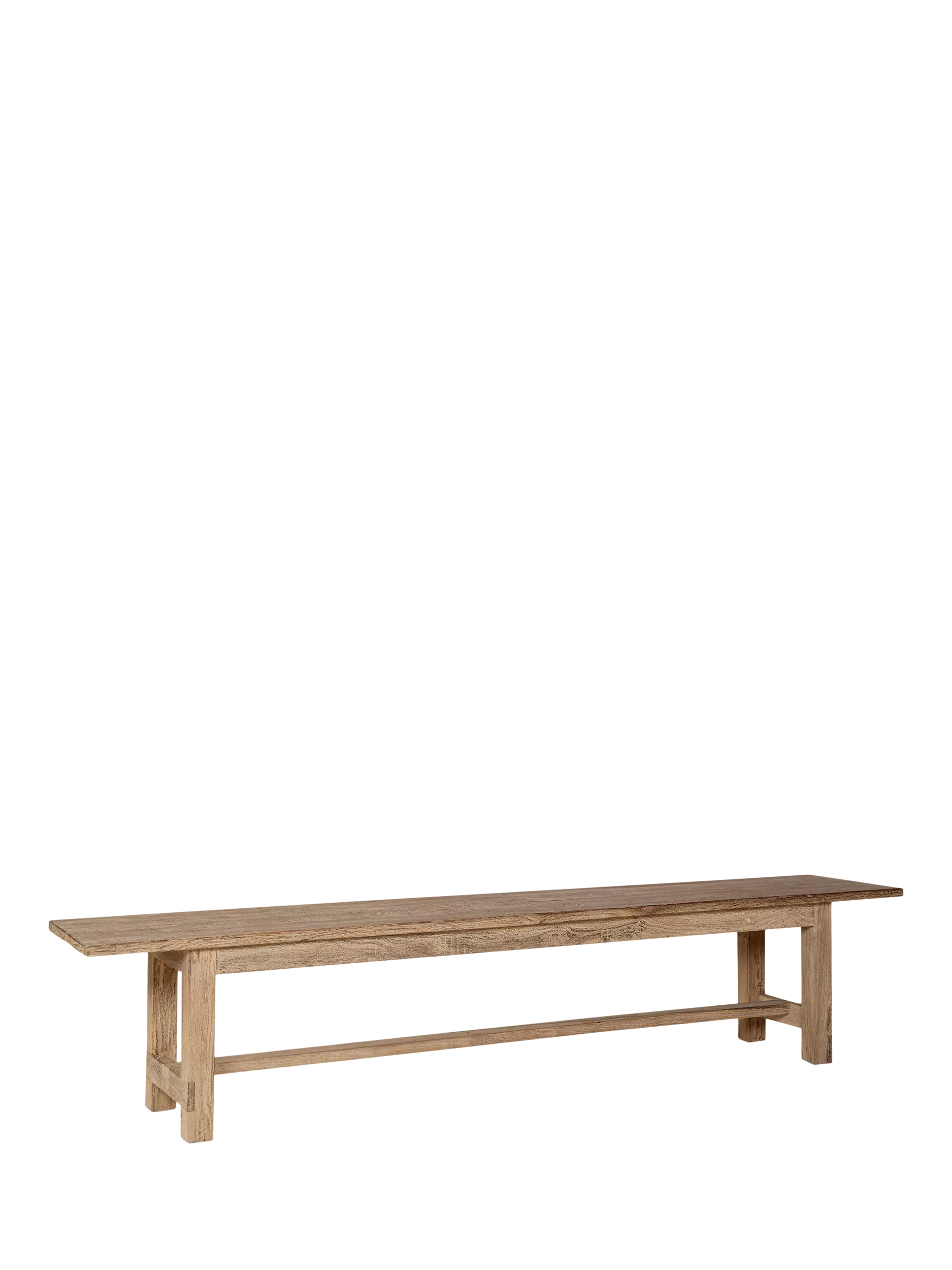 The Fioni design uses reclaimed wooden ceiling beams from India where they are repurposed and handcrafted to create unique and timeless pieces that offer the perfect foundation for an understated dining area. Sanded and lightly finished with a white wash, the mixed woods are harmonised in appearance yet still allow for subtle variations in tone and grain to shine through, lending a laidback farmhouse aesthetic to the overall look of this well proportioned bench.