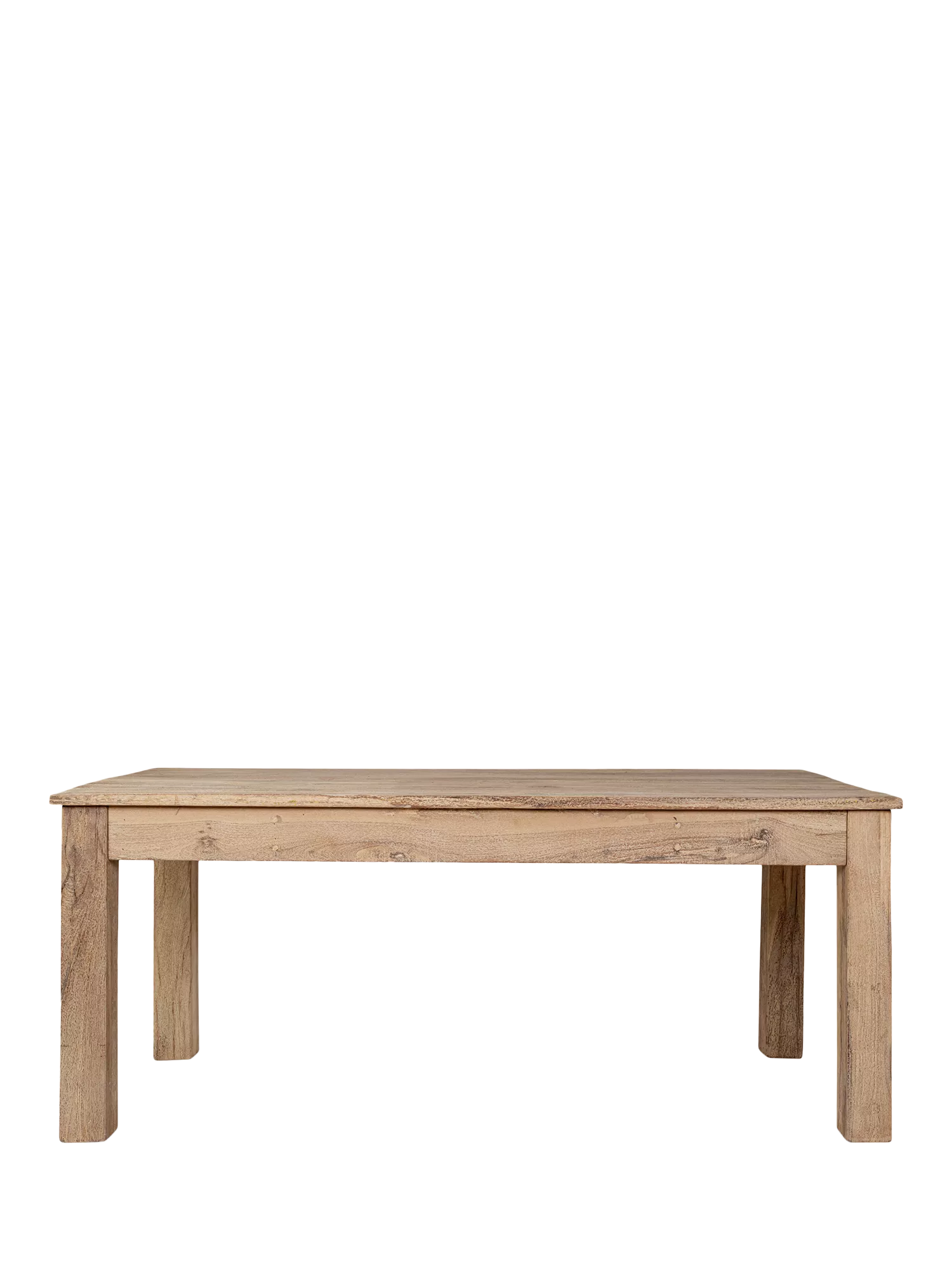Sanded and lightly finished with a white wash, the mixed woods that make up this table are harmonised in appearance yet still allow for subtle variations in tone and grain to shine through. A recessed drawer with antique brass handle is the finishing touch that lends a laidback farmhouse aesthetic to the overall look of this perfectly proportioned table.