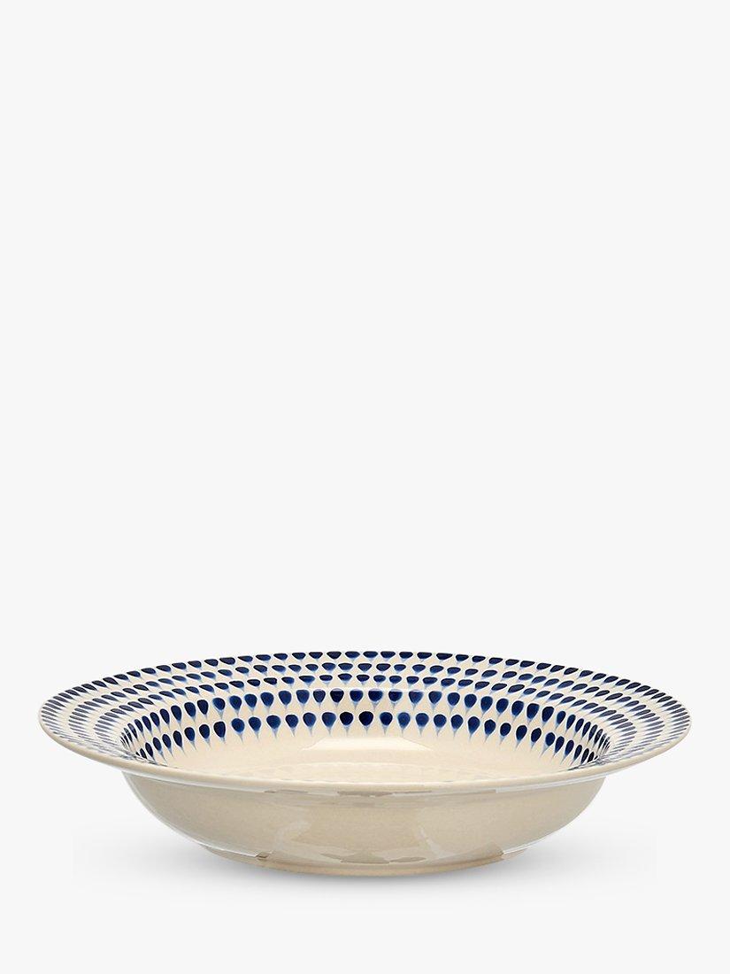nkukuIndigo Drop Ceramic Pasta Bowl, 23cm, Cream/Indigo