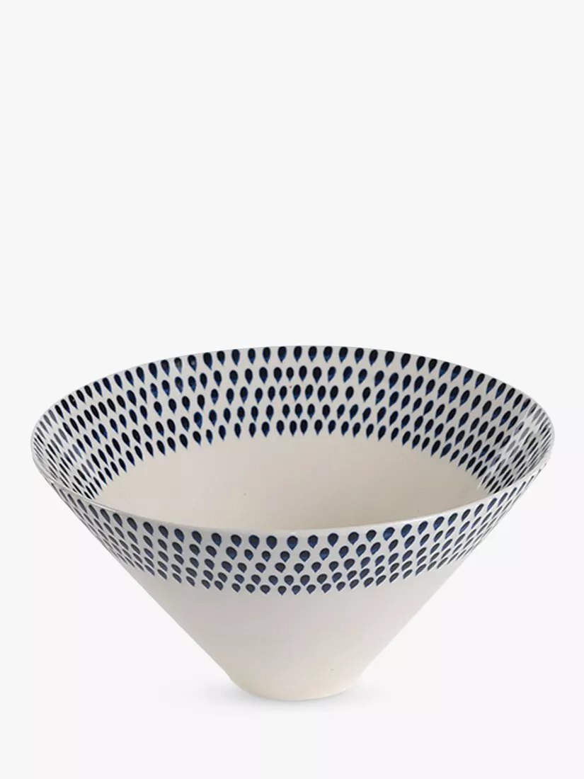 nkukuIndigo Drop Ceramic Serving Bowl, 30cm, Cream/Indigo