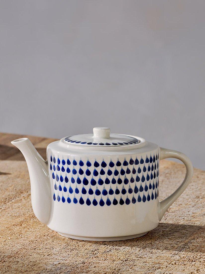 nkukuIndigo Drop Ceramic Teapot, Cream/Blue