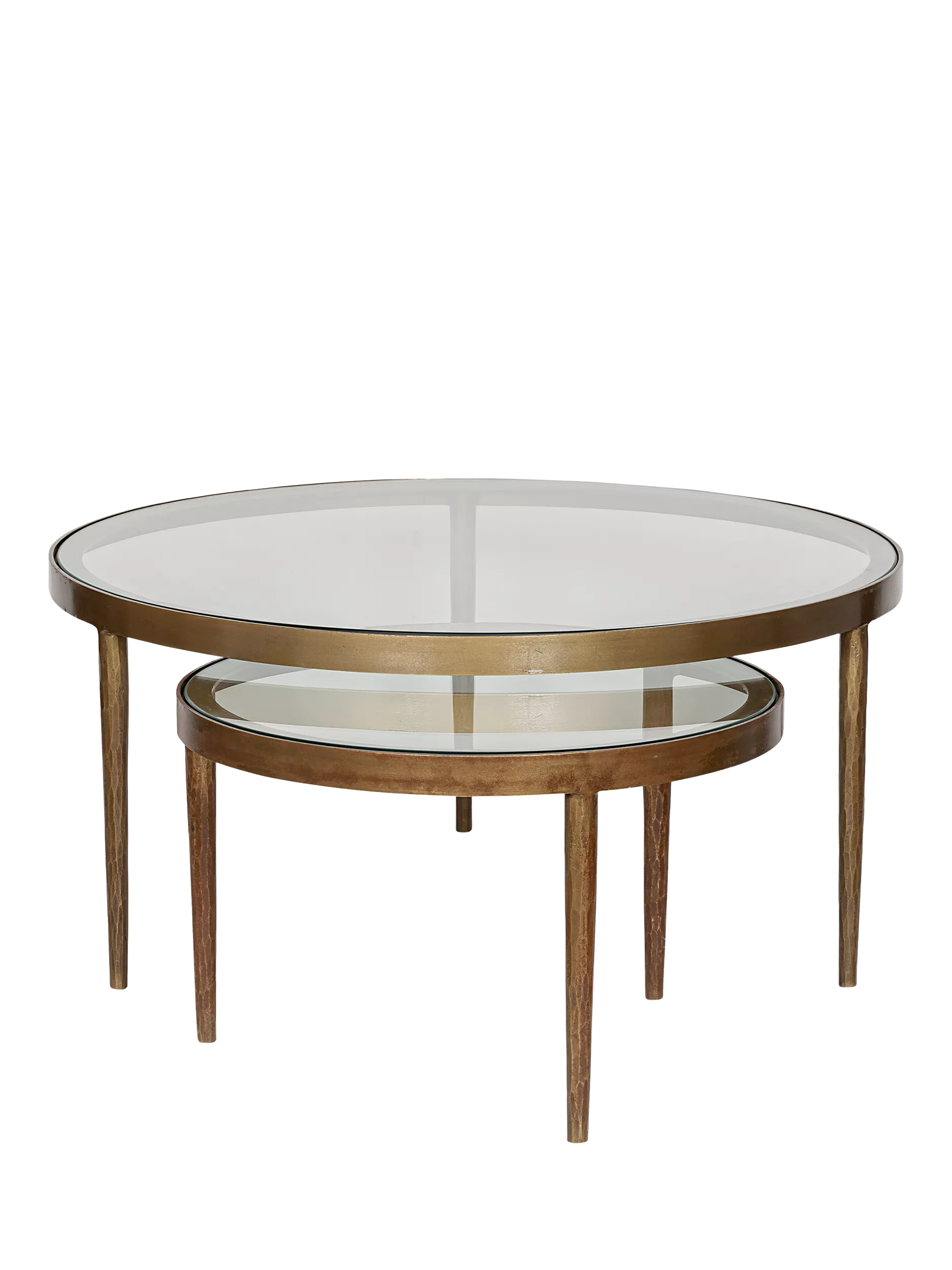 The duo of Jiya coffee tables make an elegant addition to any living space, giving versatile extra table space when needed; the smaller table can then be neatly nested under the larger one when room is required.