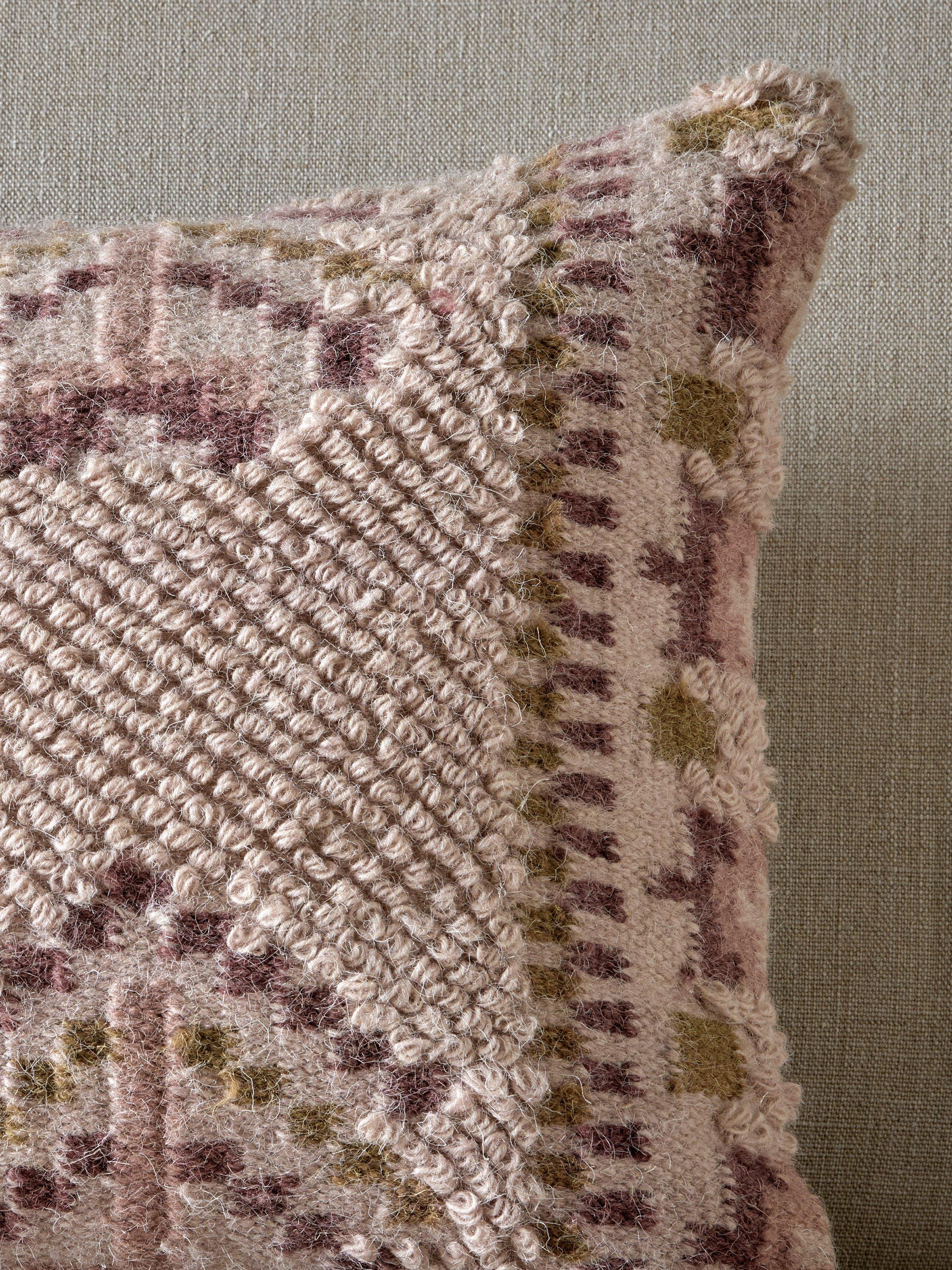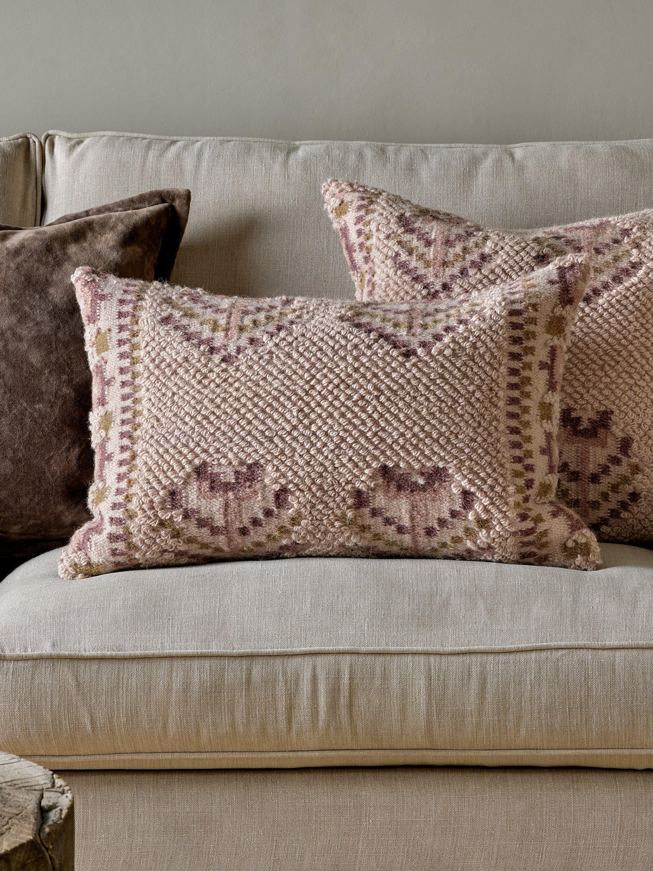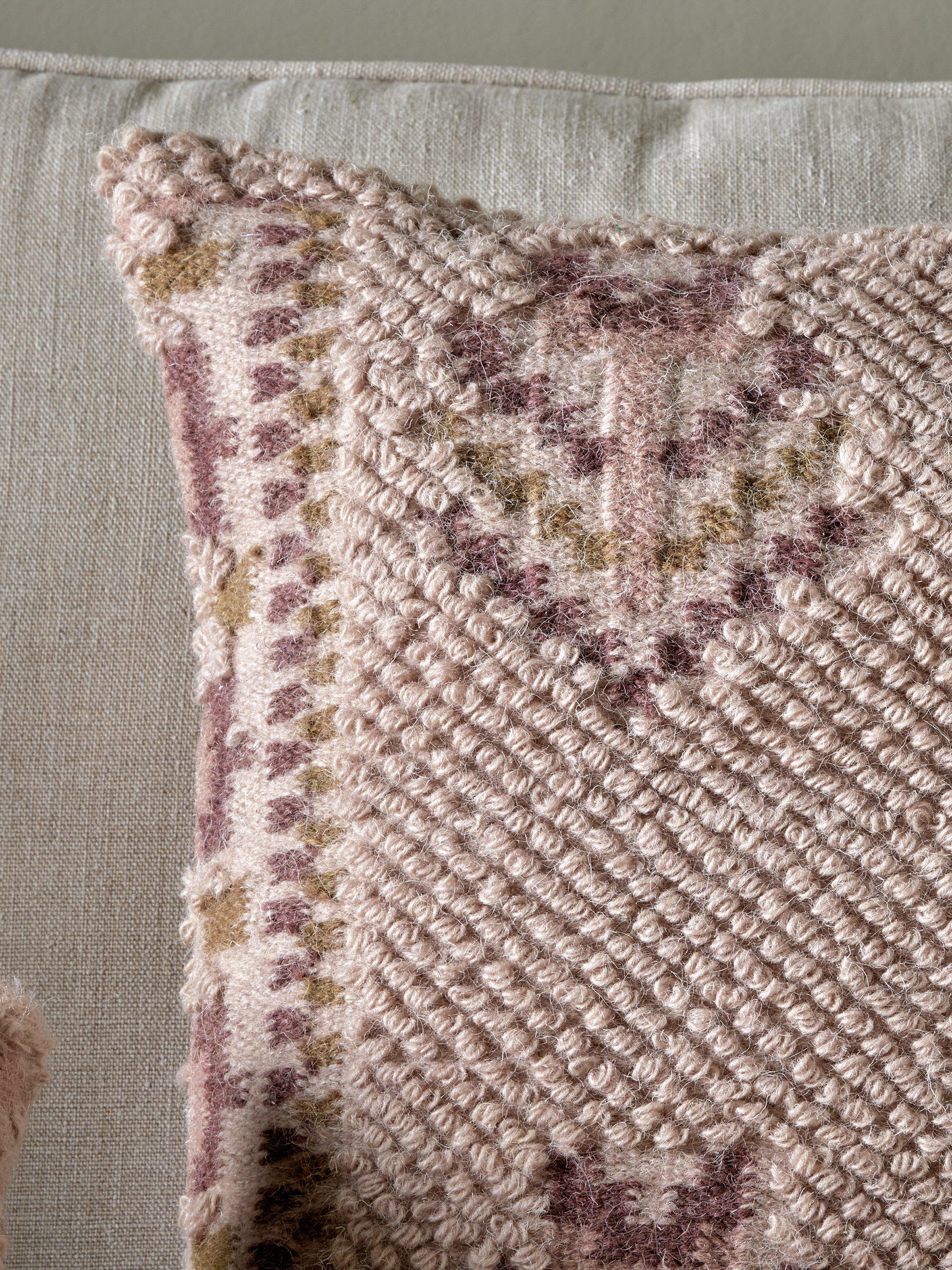 The Kandy cushion cover boasts an intricate traditional Indian floral design, rendered in soft, dusty pink tones that effortlessly add warmth and elegance to any room. Expertly crafted from a blend of wool and cotton, this cover provides both classic durability and supreme comfort.